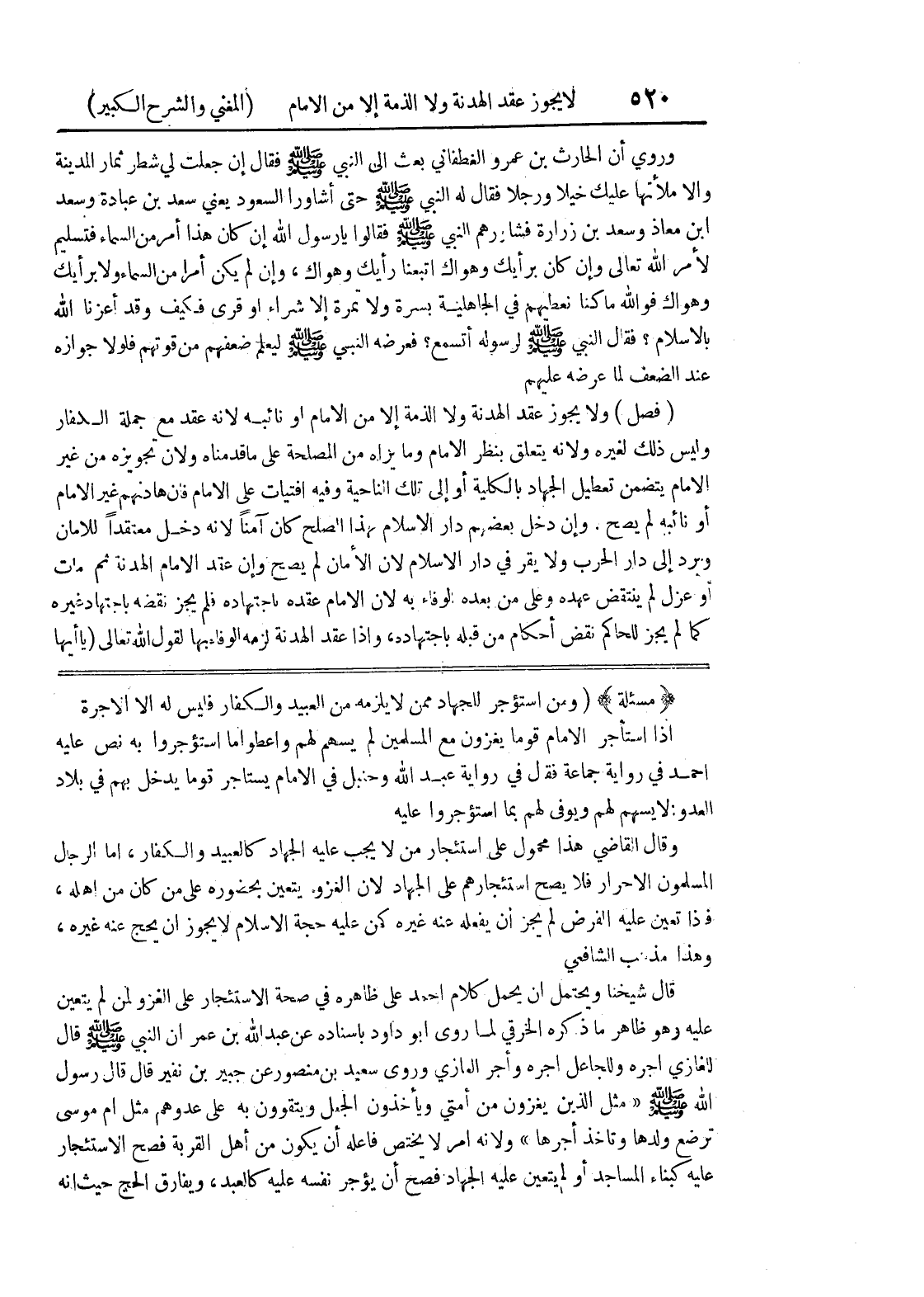 (مسألة) (ومن استؤجر للجهاد ممن لا يلزمه من العبيد والكفار فليس له إلا الأجرة إذا استأجر الإمام قوما يغزون مع المسلمين لم يسهم لهم وأعطوا ما استؤجروا به نص عليه أحمد في رواية جماعة فقال في رواية عبد الله وحنبل في الإمام يستأجر قوما يدخل بهم في بلاد العدو: لا يسهم لهم ويوفي لهم بما استؤجروا عليه وقال القاضي هذا محمول على استئجار من لا يجب عليه الجهاد كالعبيد والكفار، اما الرجال المسلمون الأحرار فلا يصح استئجارهم على الجهاد لأن الغزو يتعين بحضوره على من كان من أهله، فإذا تعين عليه الفرض لم يجز أن يفعله عنه غيره كمن عليه حجة الإسلام لا يجوز أن يحج عنه غيره، وهذا مذهب الشافعي قال شيخنا ويحتمل أن يحمل كلام أحمد على ظاهره في صحة الاستئجار على الغزو لمن لم يتعين عليه وهو ظاهر ما ذكره الخرقي لما روى أبو داود بإسناده عن عبد الله بن عمر أن النبي صلى الله عليه وسلم قال للغازي أجره وللجاعل أجره وأجر الغازي وروى سعيد بن منصور عن جبير بن نفير قال قال رسول الله صلى الله عليه وسلم (مثل الذين يغزون من أمتى ويأخذون الجعل ويتقوون به على عدوهم مثل أم موسى ترضع ولدها وتأخذ أجرها) ولأنه أمر لا يختص فاعله أن يكون من أهل القربة فصح الاستئجار عليه كبناء المساجد أو لم يتعين عليه الجهاد فصح أن يؤجر نفسه عليه كالعبد، ويفارق الحج حيث انه