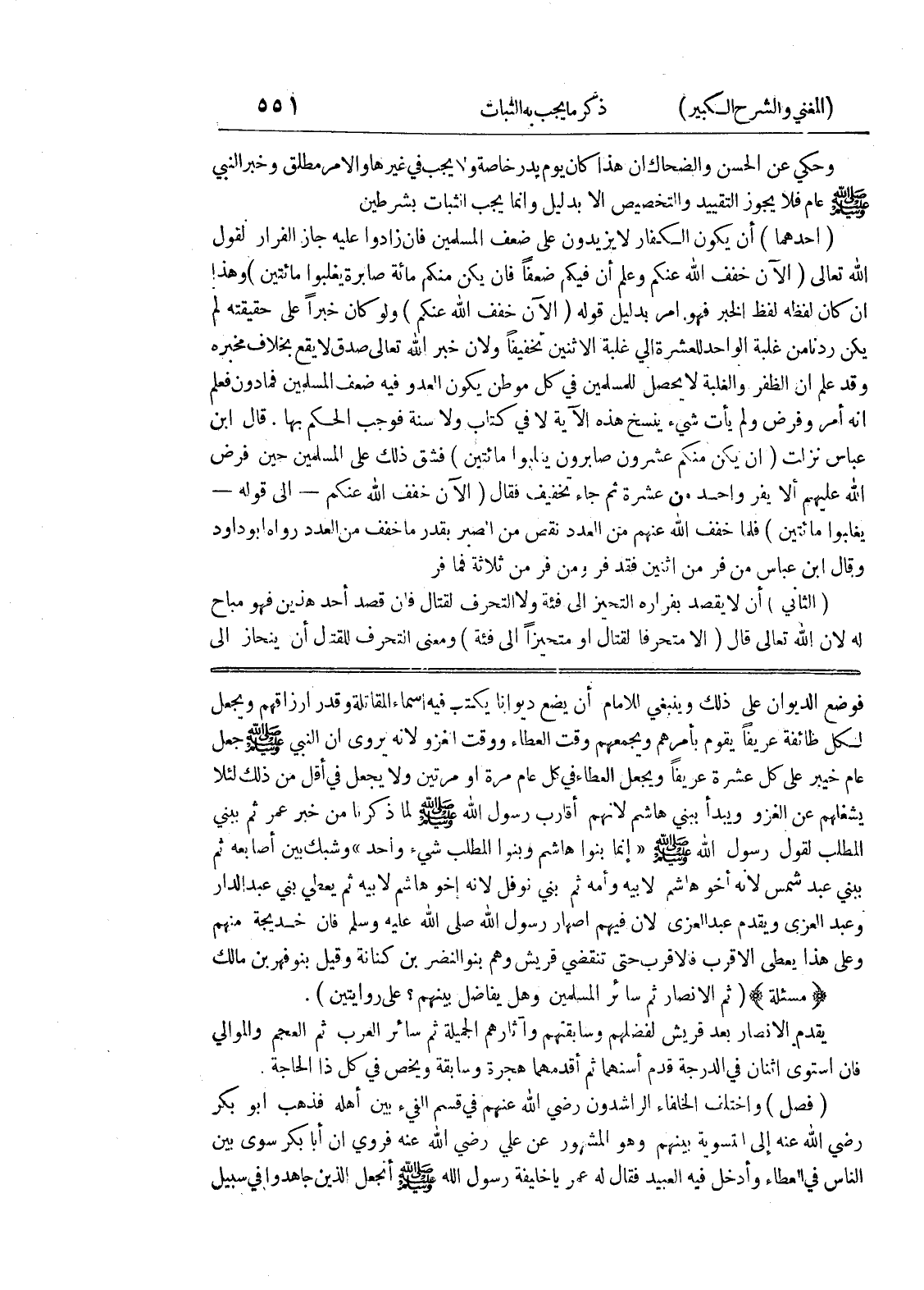 فوضع الديوان على ذلك وينبغي للإمام أن يضع ديوانا يكتب فيه أسماء المقاتلة وقدر أرزاقهم ويجعل لكل طائفة عريفاً يقوم بأمرهم ويجمعهم وقت العطاء ووقت الغزو لأنه يروى أن النبي صلى الله عليه وسلم جعل عام خيبر على كل عشرة عريفاً ويجعل العطاء في كل عام مرة أو مرتين ولا يجعل في أقل من ذلك لئلا يشغلهم عن الغزو ويبدأ ببني هاشم لأنهم أقارب رسول الله صلى الله عليه وسلم لما ذكرنا من خبر عمر ثم ببني المطلب لقول رسول الله صلى الله عليه وسلم (انما بنوا هاشم وبنوا المطلب شئ واحد) وشبك بين أصابعه ثم ببني عبد شمس لأنه أخو هاشم لأبيه وأمه ثم بني نوفل لأنه أخو هاشم لأبيه ثم يعطي بني عبد الدار