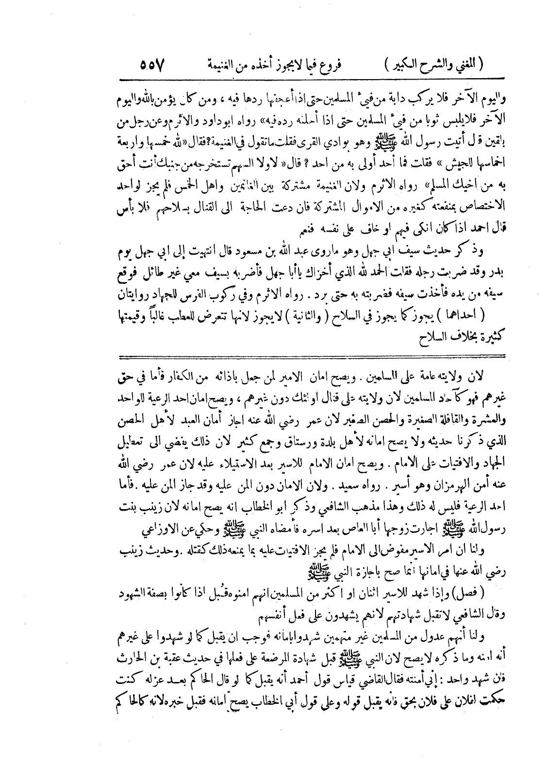 وحديث زينب رضي الله عنها في أمانها إنما صح بإجازة النبي صلى الله عليه وسلم (فصل) وإذا شهد للأسير اثنان أو أكثر من المسلمين أنهم أمنوه قبل إذا كانوا بصفة الشهود وقال الشافعي لاتقبل شهادتهم لانهم يشهدون على فعل أنفسهم ولنا أنهم عدول من المسلمين غير متهمين شهدوا بأمانه فوجب أن يقبل كما لو شهدوا على غيرهم أنه أمنه وما ذكره لا يصح لأن النبي صلى الله عليه وسلم قبل شهادة المرضعة على فعلها في حديث عقبة بن الحارث فإن شهد واحد: إني أمنته فقال القاضي قياس قول أحمد أنه يقبل كما لو قال الحاكم بعد عزله كنت حكمت لفلان على فلان بحق فإنه يقبل قوله وعلى قول أبي الخطاب يصح امانه فقبل خبره لانه كالحاكم