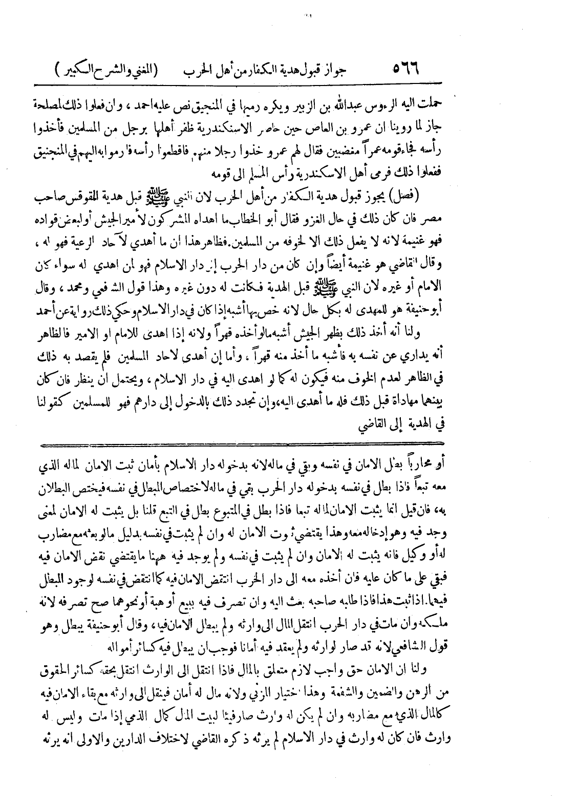 إذا ثبت هذا فإذا طلبه صاحبه بعث إليه وإن تصرف فيه ببيع أو هبة أو نحوهما صح تصرفه لأنه ملكه وإن مات في دار الحرب انتقل المال إلى وارثه ولم يبطل الأمان فيه، وقال أبو حنيفة يبطل وهو قول الشافعي لأنه قد صار لوارثه ولم يعقد فيه أماناً فوجب أن يبطل فيه كسائر أمواله ولنا أن الأمان حق واجب لازم متعلق بالمال فإذا انتقل إلى الوارث انتقل بحقه كسائر الحقوق من الرهن والضمين والشفعة وهذا اختيار المزني ولأنه مال له أمان فينقل إلى وارثه مع بقاء الأمان فيه كالمال الذي مع مضاربه وإن لم يكن له وارث صار فيئاً لبيت المال كمال الذمي إذا مات وليس له وارث فإن كان له وارث في دار الإسلام لم يرثه ذكره القاضي لاختلاف الدارين والأولى أنه يرثه