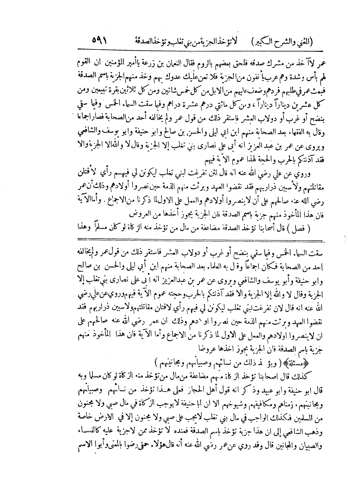 زمناهم ومكافيفهم وشيوخهم إلا أن أبا حنيفة لا يوجب الزكاة في مال صبي ولا مجنون من المسلمين فكذلك الواجب في مال بني تغلب لا يجب على صبي ولا مجنون إلا في الارض خاصة وذهب الشافعي إلى أن هذا جزية تؤخذ باسم الصدقة فعنده لا تؤخذ ممن لا جزية عليه كالنساء