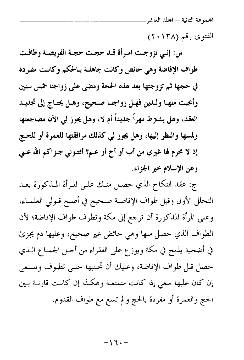 س: إني تزوجت امرأة قد حجت حجة الفريضة وطافت طواف الإفاضة وهي حائض، وكانت جاهلة بالحكم، وكانت مفردة في حجها، ثم تزوجتها بعد هذه الحجة، ومضى على زواجنا خمس سنين، وأنجبت منها ولدين فهل زواجنا صحيح، وهل يحتاج إلى تجديد العقد، وهل يشترط مهرا جديدا أم لا، وهل يجوز لي الآن مضاجعتها ولمسها والنظر إليها، وهل يجوز لي كذلك مرافقتها للعمرة أو للحج إذ لا محرم لها غيري من أب أو أخ أو عم؟ أفتوني جزاكم الله عني وعن الإسلام خير الجزاء.