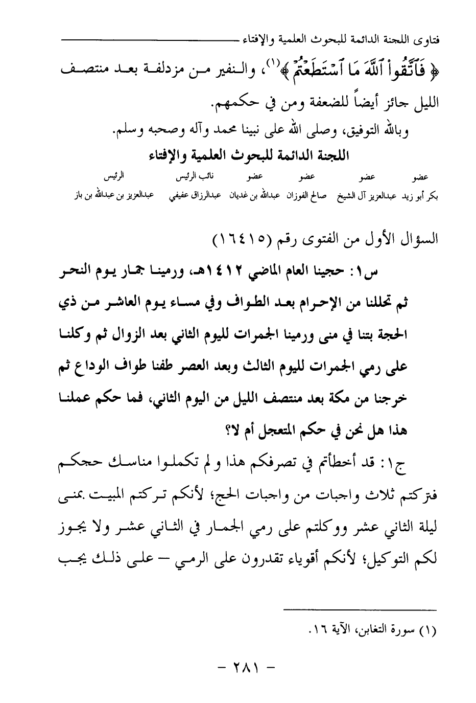 بكر أبو زيد ... عبد العزيز آل الشيخ ... صالح الفوزان ... عبد الله بن غديان ... عبد الرزاق عفيفي ... عبد العزيز بن عبد الله بن باز