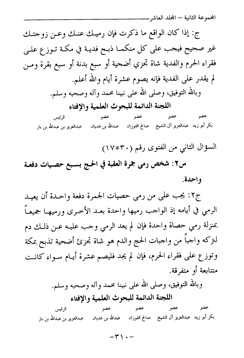 بكر أبو زيد ... عبد العزيز آل الشيخ ... صالح الفوزان ... عبد الله بن غديان ... عبد العزيز بن عبد الله بن باز