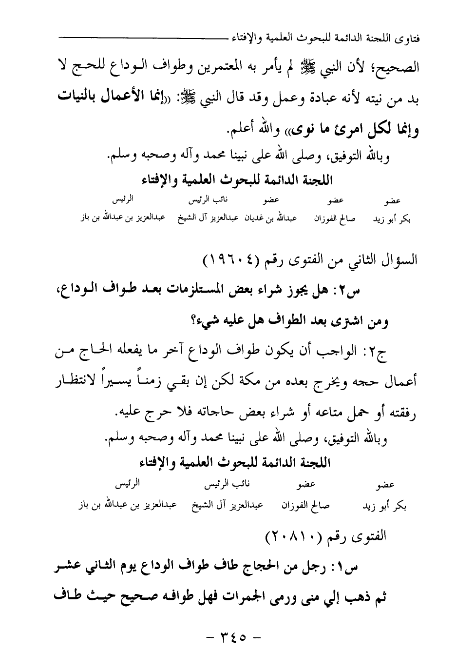 س2: هل يجوز شراء بعض المستلزمات بعد طواف الوداع، ومن اشترى بعد الطواف هل عليه شيء؟