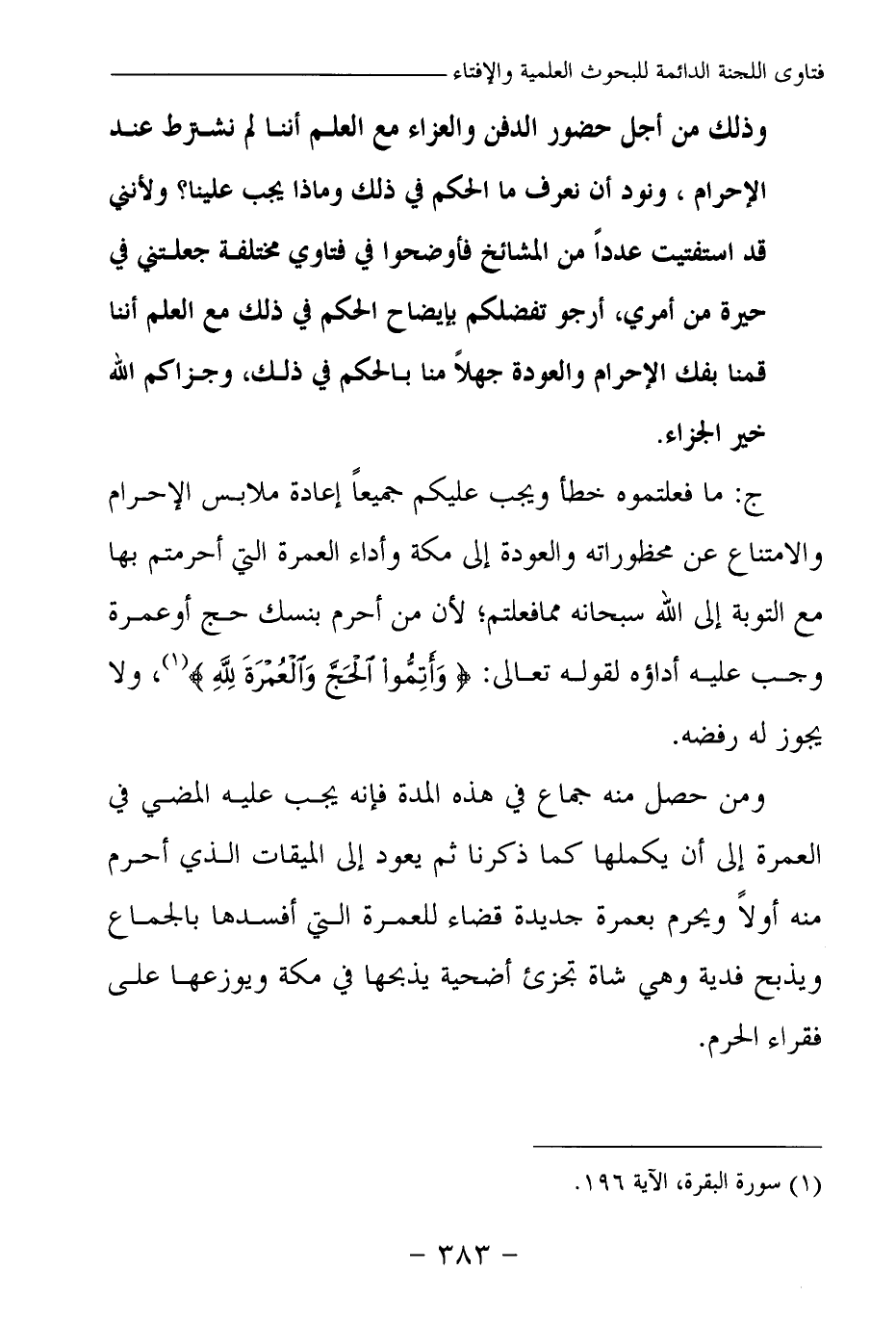 (¬1) سورة البقرة الآية 196