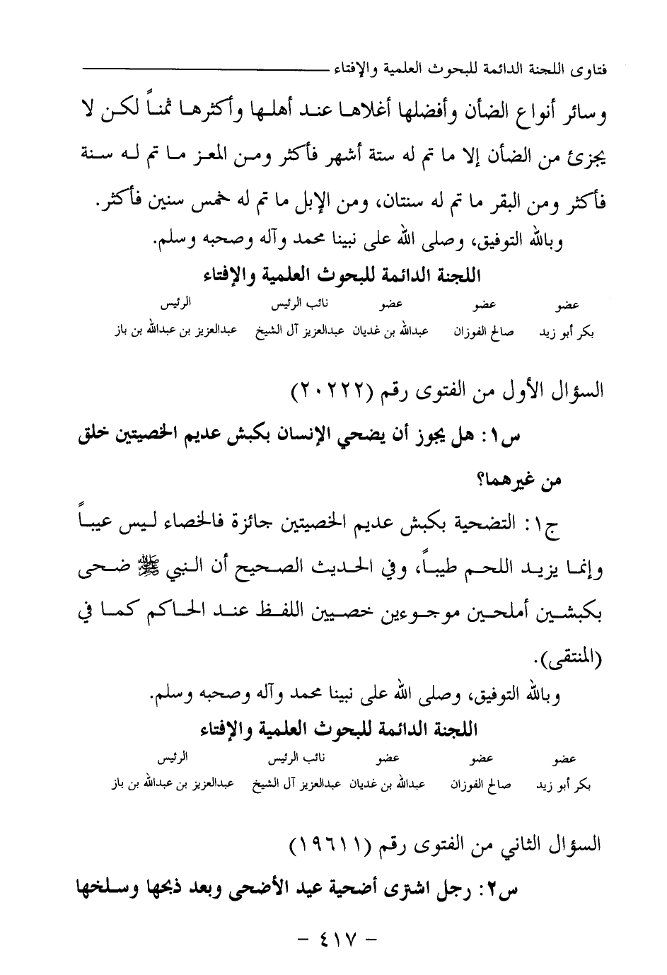 بكر أبو زيد ... صالح الفوزان ... عبد الله بن غديان ... عبد العزيز آل الشيخ ... عبد العزيز بن عبد الله بن باز