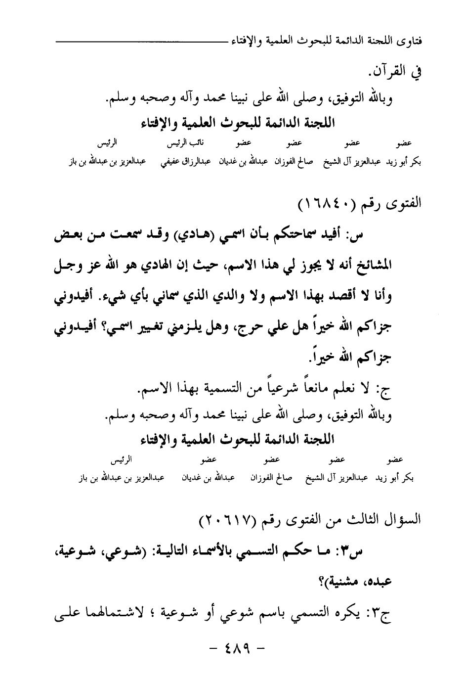 بكر أبو زيد ... عبد العزيز آل الشيخ ... صالح الفوزان ... عبد الله بن غديان ... عبد الرزاق عفيفي ... عبد العزيز بن عبد الله بن باز