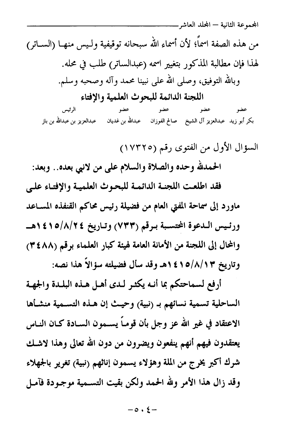 بكر أبو زيد ... عبد العزيز آل الشيخ ... صالح الفوزان ... عبد الله بن غديان ... عبد العزيز بن عبد الله بن باز