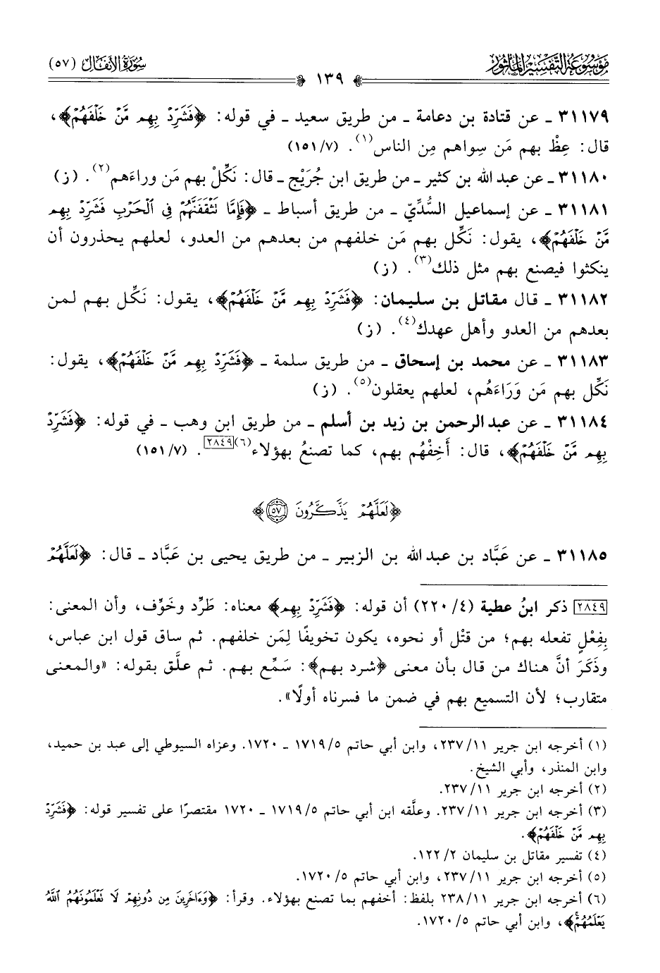 ٣١١٨٤ - عن عبد الرحمن بن زيد بن أسلم -من طريق ابن وهب- في قوله: {فشرد بهم من خلفهم}، قال: أخِفْهُم بهم، كما تصنعُ بهؤلاء (¬٦) [٢٨٤٩]. (٧/ ١٥١)