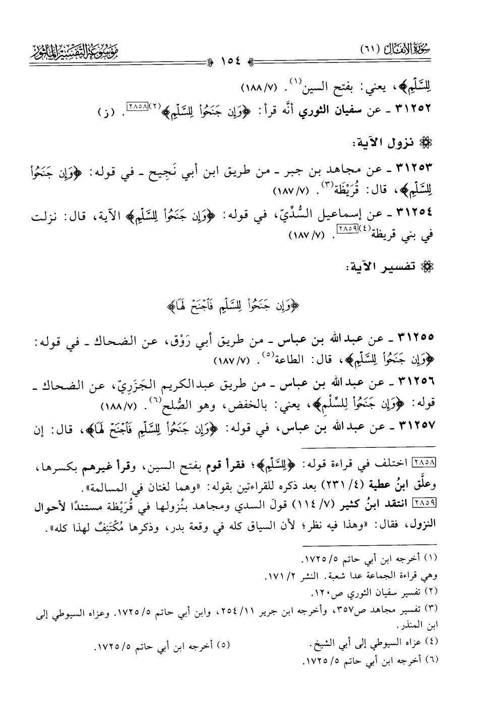 ٣١٢٥٣ - عن مجاهد بن جبر -من طريق ابن أبي نَجِيح- في قوله: {وإن جنحوا للسلم}، قال: قُرَيْظَة (¬٣). (٧/ ١٨٧)