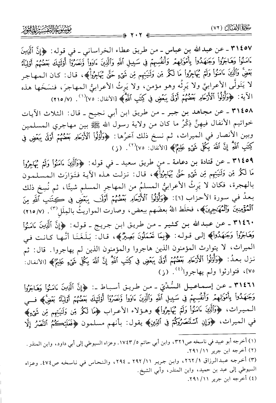 ٣١٤٦١ - عن إسماعيل السُّدِّيّ -من طريق أسباط-: {إن الذين آمنوا وهاجروا وجاهدوا بأموالهم وأنفسهم في سبيل الله والذين آووا ونصروا أولئك بعضهم أولياء بعض} في الميراث، {والذين آمنوا ولم يهاجروا} وهؤلاء الأعراب {ما لكم من ولايتهم من شيء} في الميراث، {وإن استنصروكم في الدين} يقول: بأنهم مسلمون {فعليكم النصر إلا