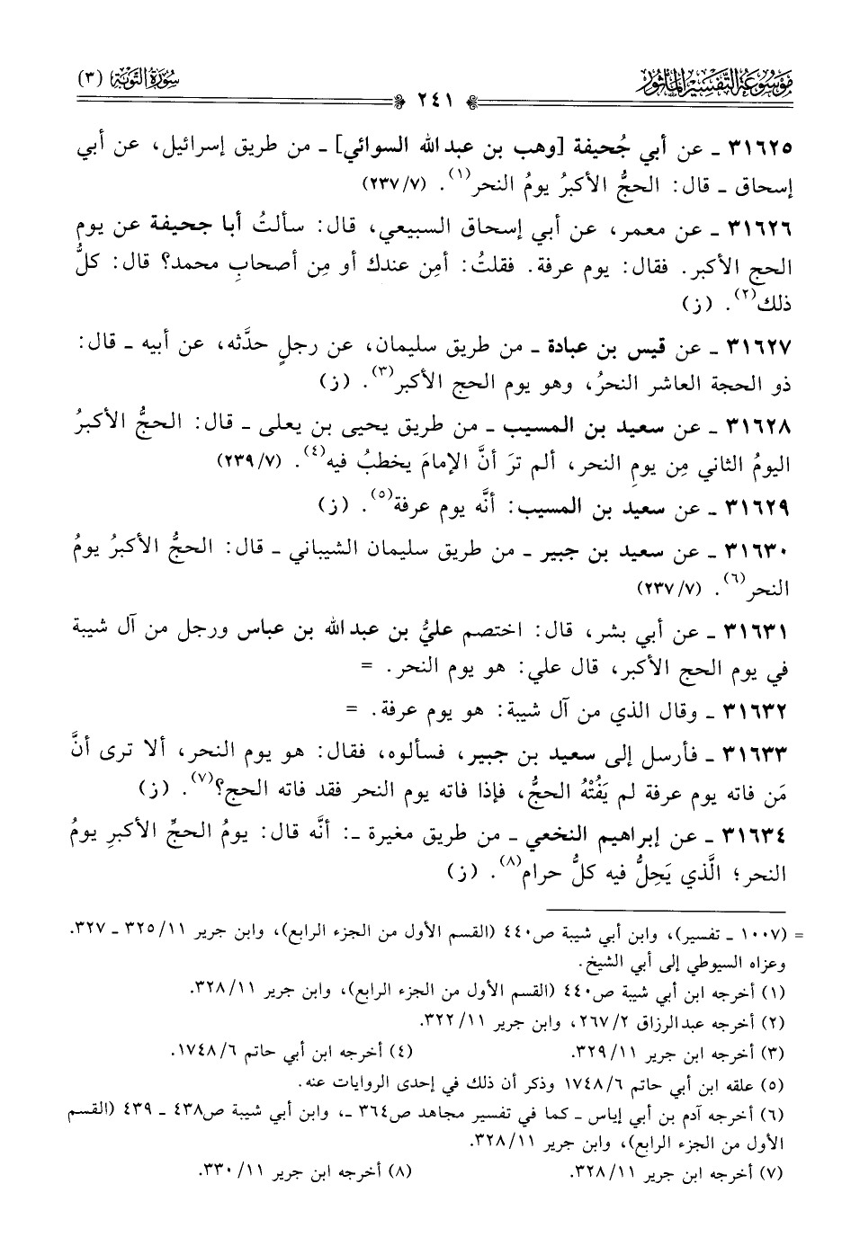 ٣١٦٣١ - عن أبي بشر، قال: اختصم عليُّ بن عبد الله بن عباس ورجل من آل شيبة في يوم الحج الأكبر، قال علي: هو يوم النحر. =