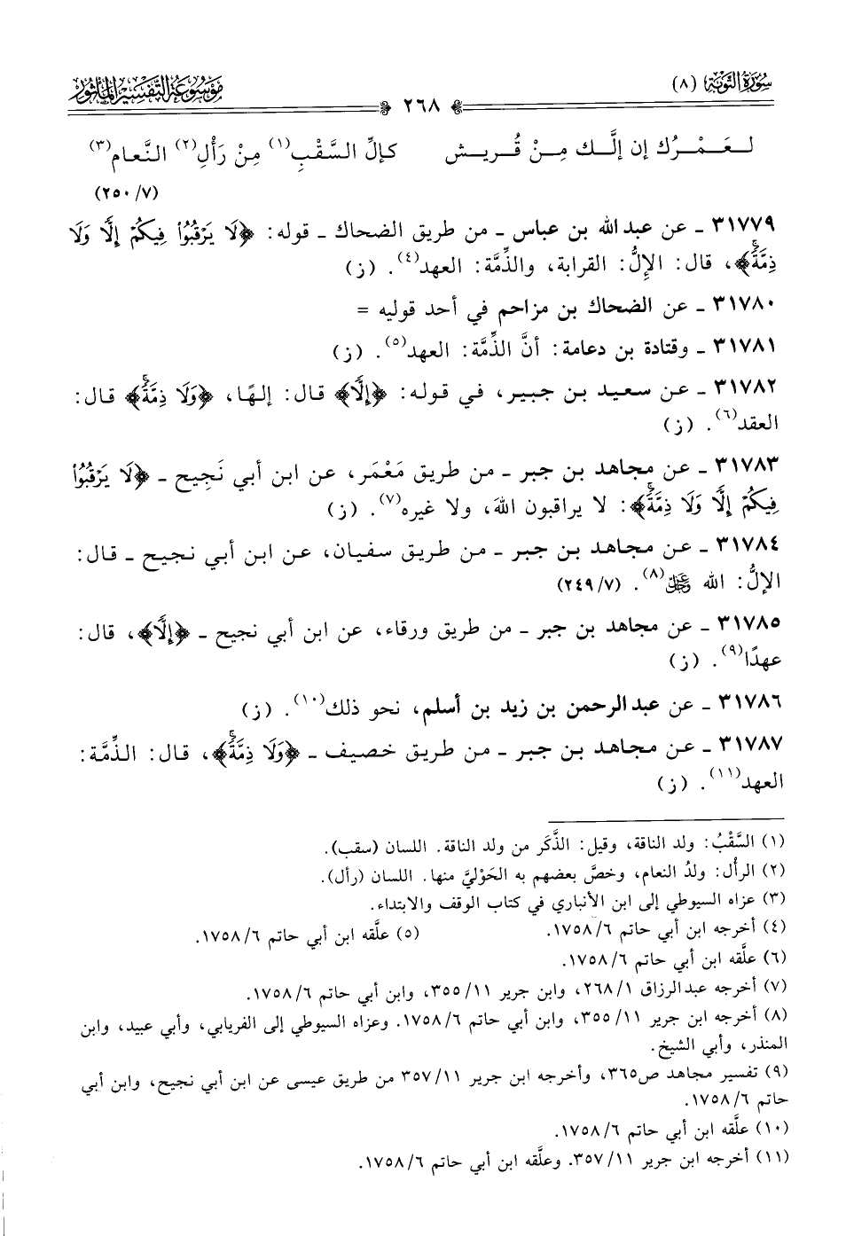 ٣١٧٨٢ - عن سعيد بن جبير، في قوله: {إلا} قال: إلهًا، {ولا ذمة} قال: العقد (¬٦). (ز)