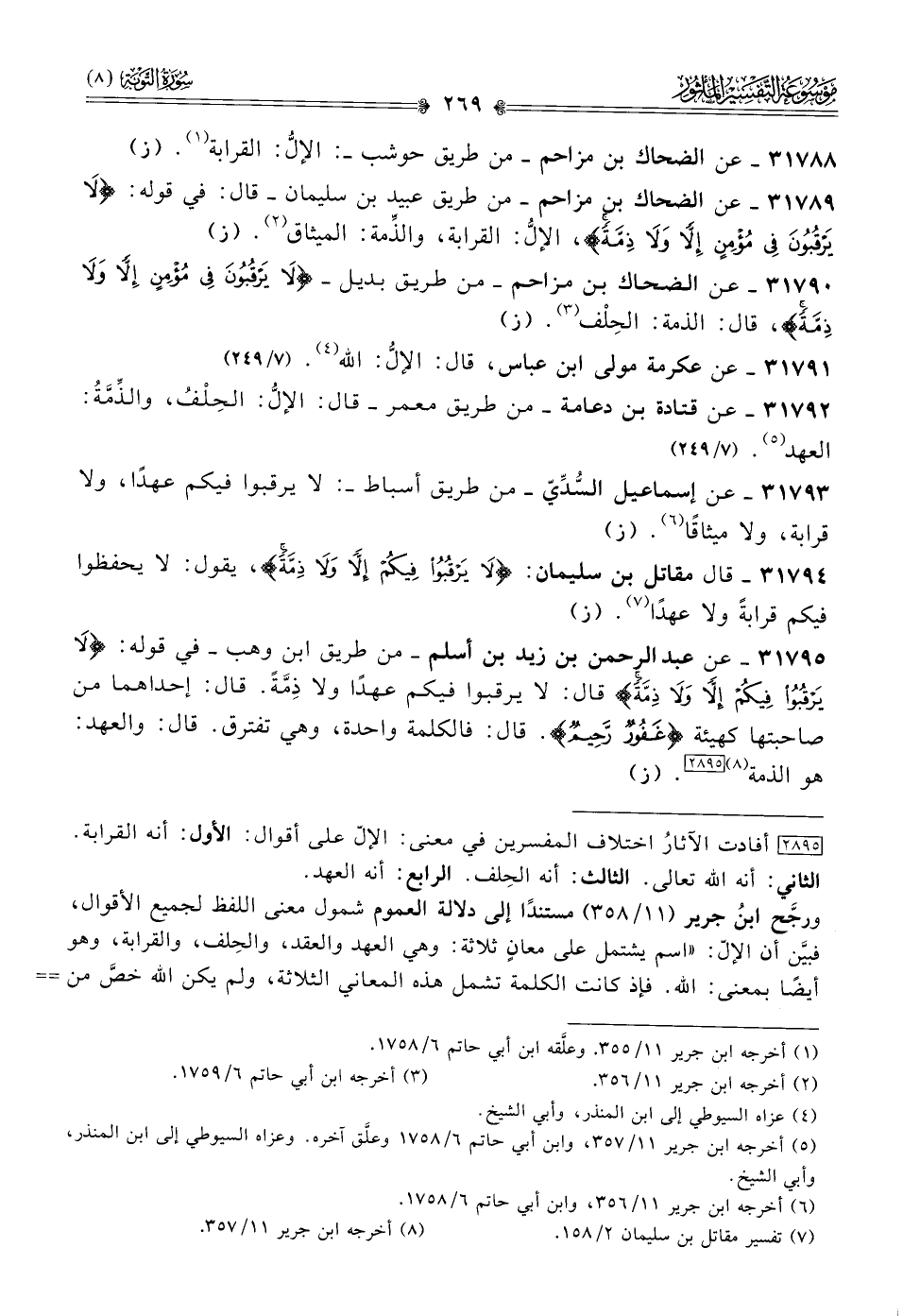 ٣١٧٨٩ - عن الضحاك بن مزاحم -من طريق عبيد بن سليمان- قال: في قوله: {لا يرقبون في مؤمن إلا ولا ذمة}، الإلُّ: القرابة، والذِّمة: الميثاق (¬٢). (ز)