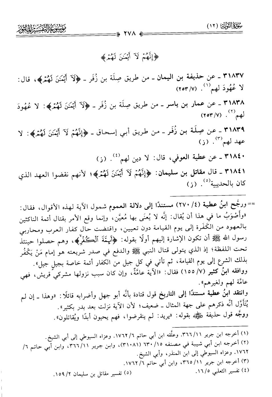 ٣١٨٣٩ - عن صِلَة بن زُفَر -من طريق أبي إسحاق- {إنهم لا أيمان لهم}: لا عهد لهم (¬٣). (ز)