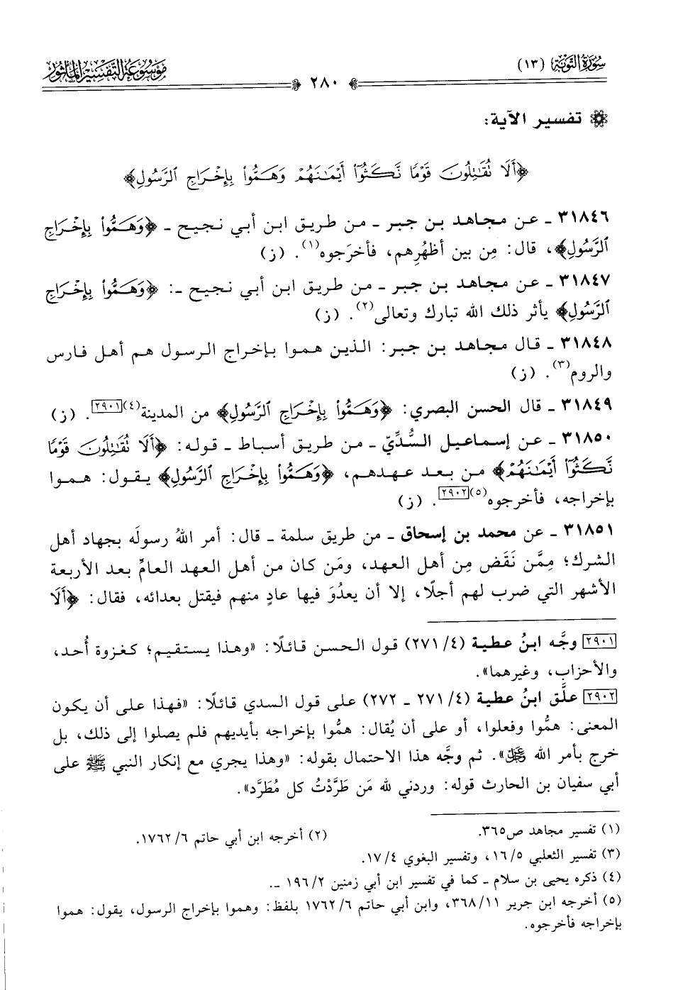 ٣١٨٤٧ - عن مجاهد بن جبر -من طريق ابن أبي نجيح-: {وهموا بإخراج الرسول} يأثر ذلك الله تبارك وتعالى (¬٢). (ز)