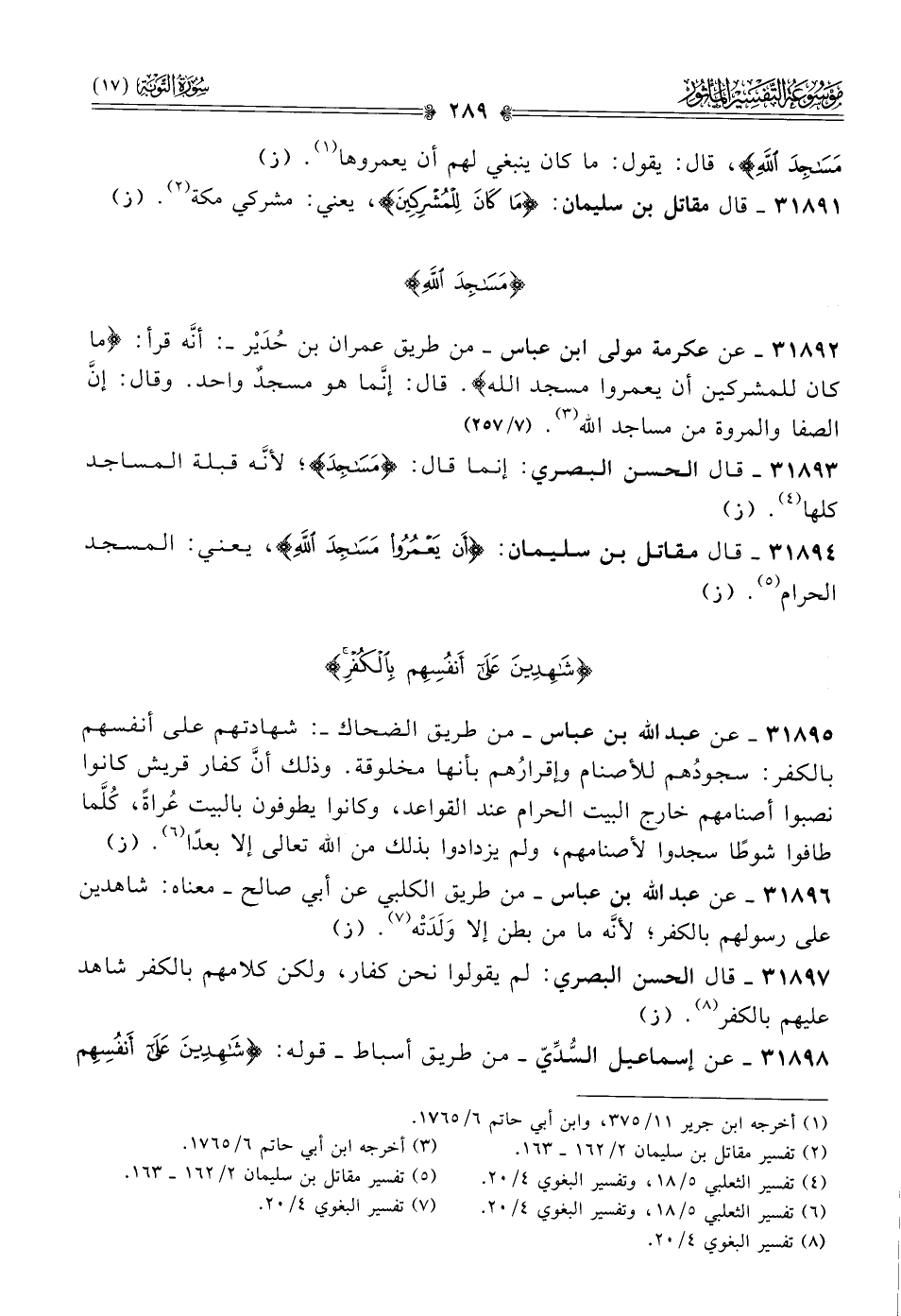 ٣١٨٩٤ - قال مقاتل بن سليمان: {أنْ يَعْمُرُوا مَساجِدَ اللَّهِ}، يعني: المسجد الحرام (¬٥). (ز)