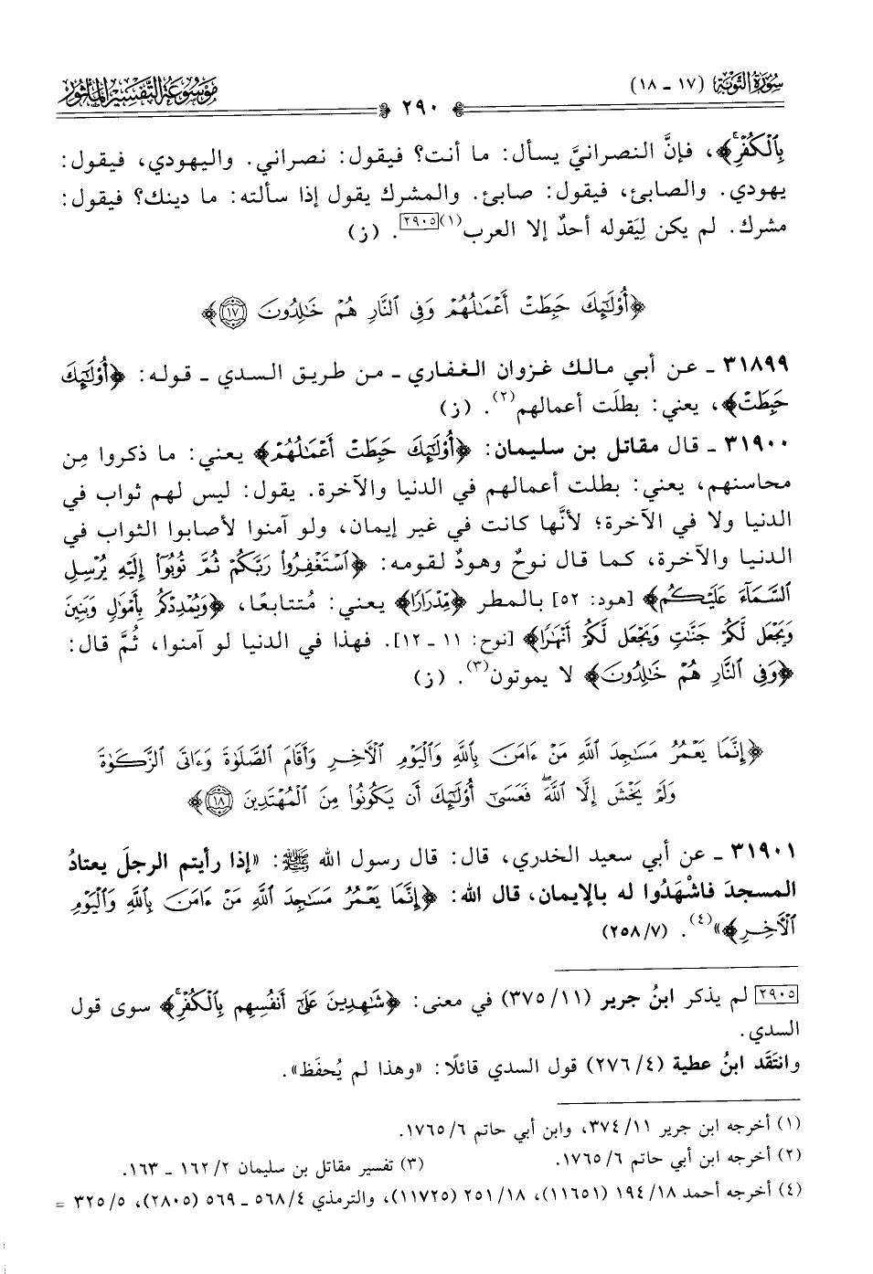 ٣١٨٩٩ - عن أبي مالك غزوان الغفاري -من طريق السدي- قوله: {حبطت أعمالهم}، يعني: بطلَت أعمالهم (¬٢). (ز)