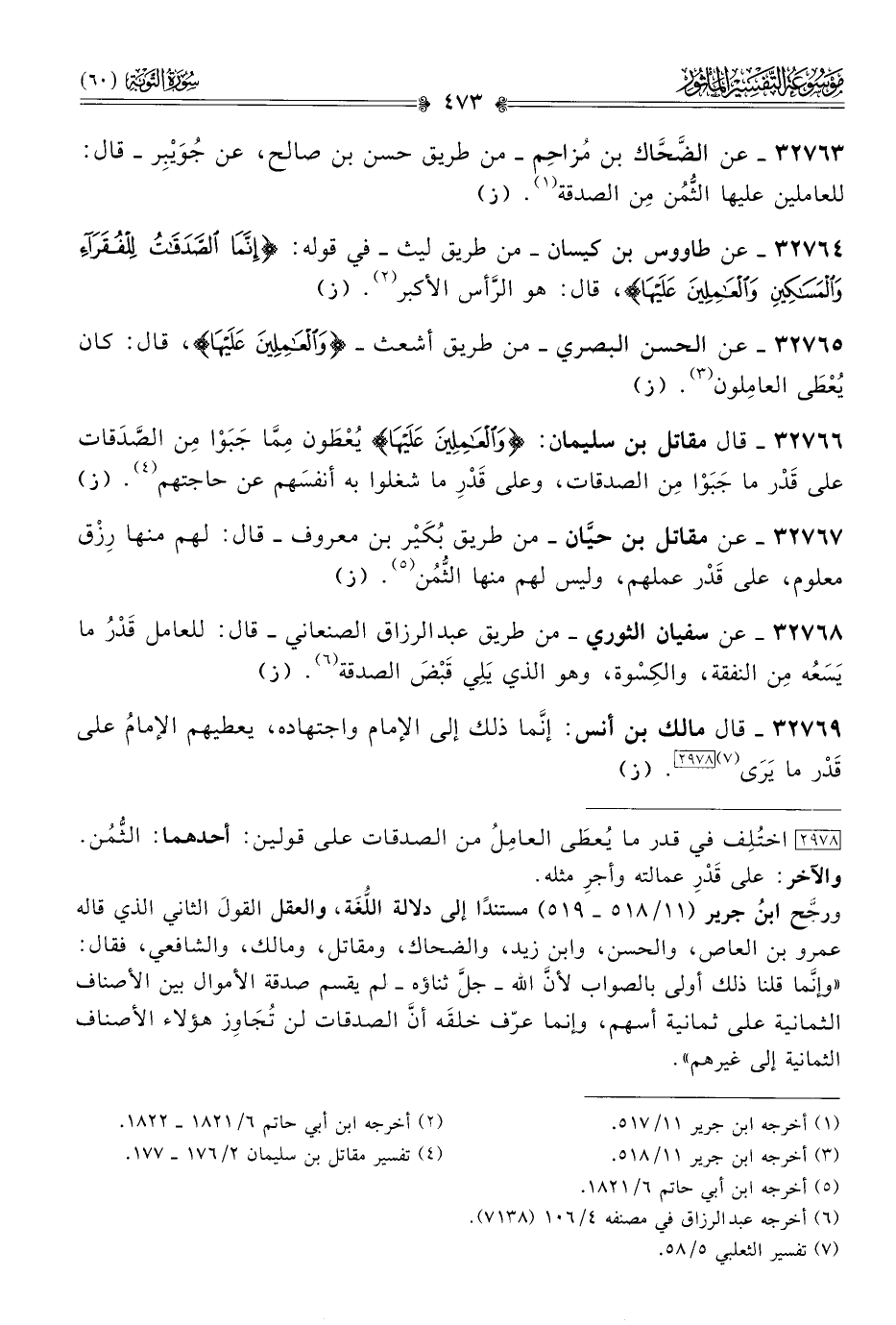 ٣٢٧٦٥ - عن الحسن البصري -من طريق أشعث- {والعاملين عليها}، قال: كان يُعْطى العامِلون (¬٣). (ز)