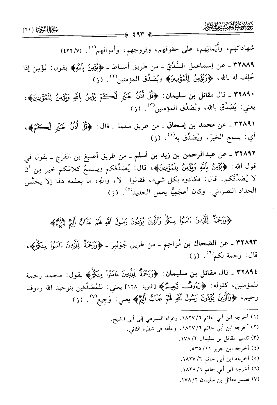 {وَرَحْمَةٌ لِلَّذِينَ آمَنُوا مِنْكُمْ وَالَّذِينَ يُؤْذُونَ رَسُولَ اللَّهِ لَهُمْ عَذَابٌ أَلِيمٌ (٦١)} ٣٢٨٩٣ - عن الضحاك بن مُزاحِم -من طريق جُوَيْبِر- {ورحمة للذين آمنوا منكم}، قال: رحمة لكم (¬٦). (ز)