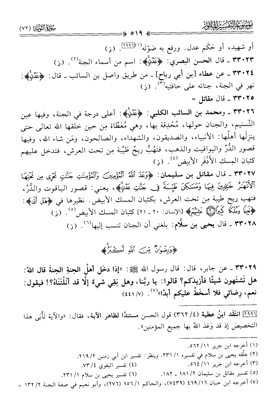 ٣٣٠٢٣ - قال الحسن البصري: {عدن}: اسم من أسماء الجنة (¬٢). (ز)