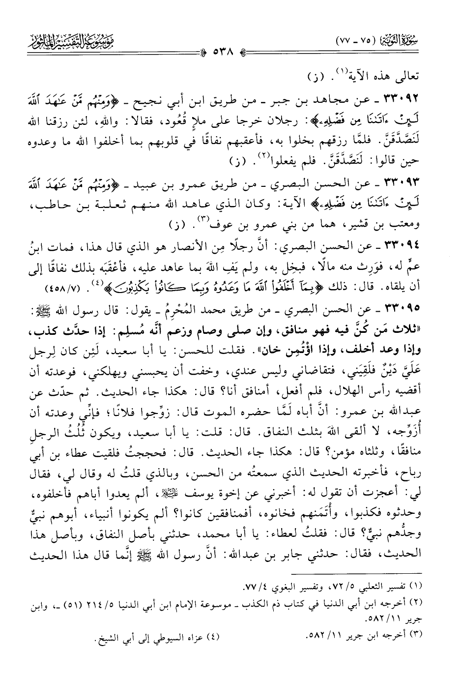 ٣٣٠٩٣ - عن الحسن البصري -من طريق عمرو بن عبيد- {ومنهم من عاهد الله لئن آتانا من فضله} الآية: وكان الذي عاهد الله منهم ثعلبة بن حاطب، ومعتب بن قشير، هما من بني عمرو بن عوف (¬٣). (ز)