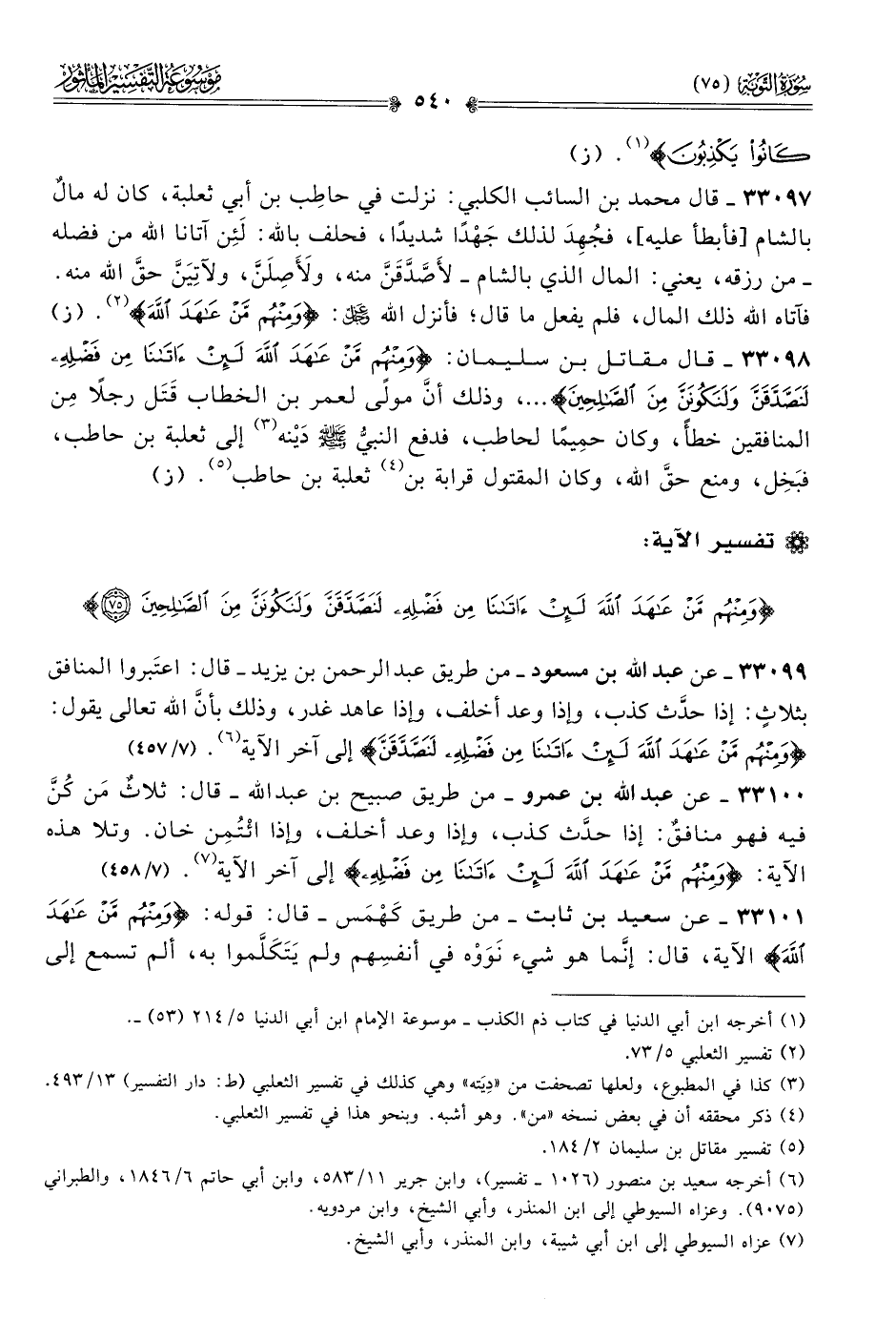 ٣٣١٠١ - عن سعيد بن ثابت -من طريق كَهْمَس- قال: قوله: {ومنهم من عاهد الله} الآية، قال: إنّما هو شيء نَوَوْه في أنفسِهم ولم يَتَكَلَّموا به، ألم تسمع إلى
