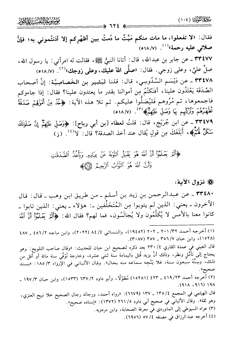 {أَلَمْ يَعْلَمُوا أَنَّ اللَّهَ هُوَ يَقْبَلُ التَّوْبَةَ عَنْ عِبَادِهِ وَيَأْخُذُ الصَّدَقَاتِ وَأَنَّ اللَّهَ هُوَ التَّوَّابُ الرَّحِيمُ (١٠٤)}