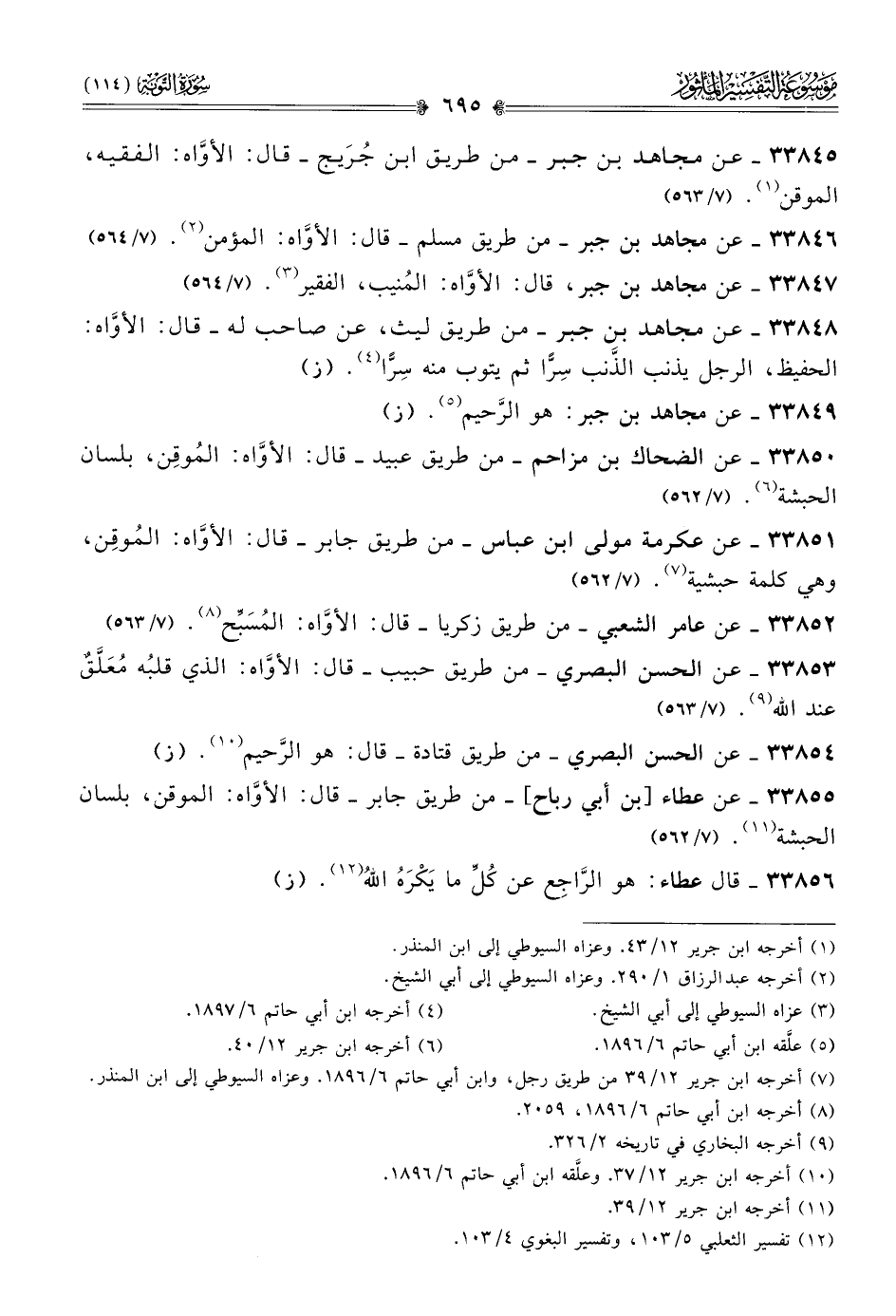 ٣٣٨٥٢ - عن عامر الشعبي -من طريق زكريا- قال: الأوّاه: المُسَبِّح (¬٨). (٧/ ٥٦٣)