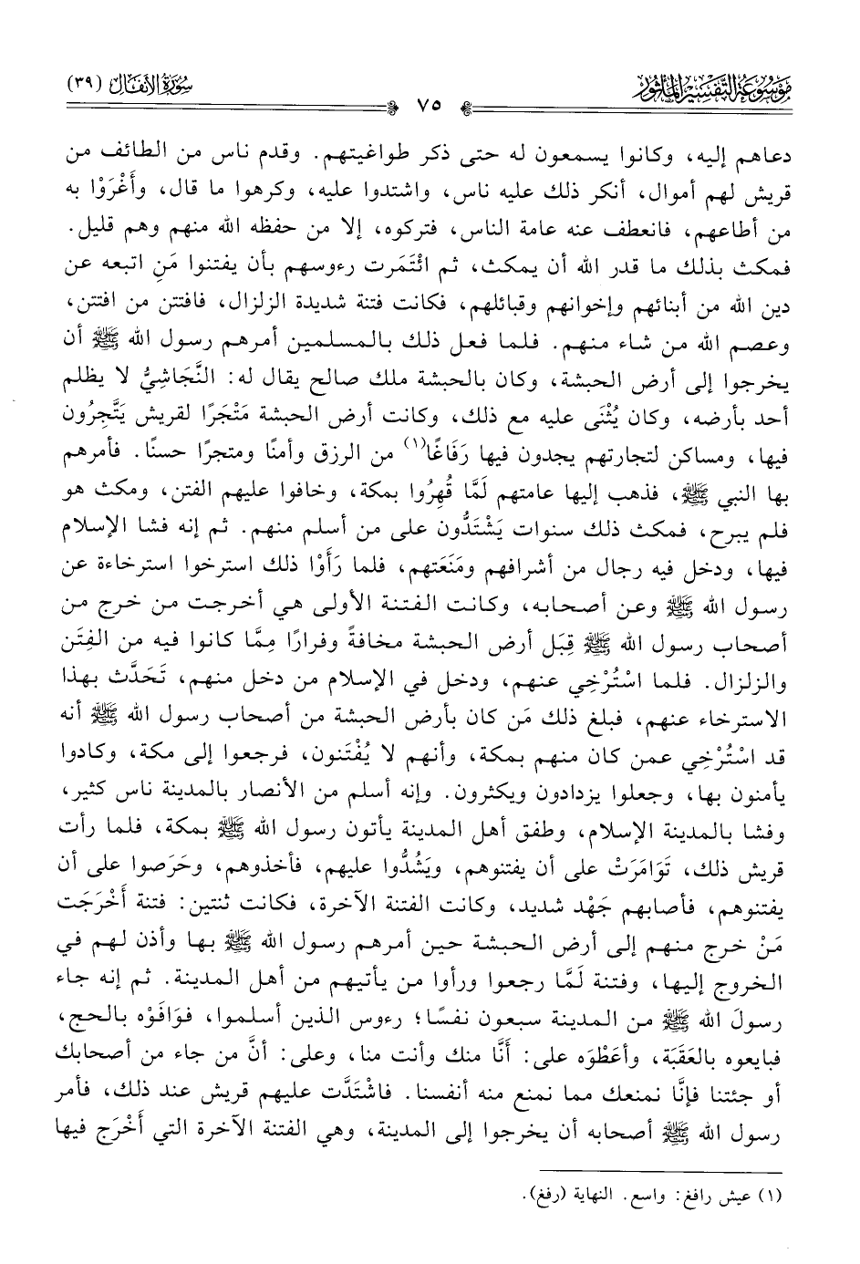 دعاهم إليه، وكانوا يسمعون له حتى ذكر طواغيتهم. وقدم ناس من الطائف من قريش لهم أموال، أنكر ذلك عليه ناس، واشتدوا عليه، وكرهوا ما قال، وأَغْرَوْا به من أطاعهم، فانعطف عنه عامة الناس، فتركوه، إلا من حفظه الله منهم وهم قليل. فمكث بذلك ما قدر الله أن يمكث، ثم ائْتَمَرت رءوسهم بأن يفتنوا مَنِ اتبعه عن دين الله من أبنائهم وإخوانهم وقبائلهم، فكانت فتنة شديدة الزلزال، فافتتن من افتتن، وعصم الله من شاء منهم. فلما فعل ذلك بالمسلمين أمرهم رسول الله - صلى الله عليه وسلم - أن يخرجوا إلى أرض الحبشة، وكان بالحبشة ملك صالح يقال له النَّجاشِيُّ لا يظلم أحد بأرضه، وكان يُثْنى عليه مع ذلك، وكانت أرض الحبشة مَتْجَرًا لقريش يَتَّجِرُون فيها، ومساكن لتجارتهم يجدون فيها رَفاغًا (¬١) من الرزق وأمنًا ومتجرًا حسنًا. فأمرهم بها النبي - صلى الله عليه وسلم -، فذهب إليها عامتهم لَمّا قُهِرُوا بمكة، وخافوا عليهم الفتن، ومكث هو فلم يبرح، فمكث ذلك سنوات يَشْتَدُّون على من أسلم منهم. ثم إنه فشا الإسلام فيها، ودخل فيه رجال من أشرافهم ومَنَعَتهم، فلما رَأَوْا ذلك استرخوا استرخاءة عن رسول الله - صلى الله عليه وسلم - وعن أصحابه، وكانت الفتنة الأولى هي أخرجت من خرج من أصحاب رسول الله - صلى الله عليه وسلم - قِبَل أرض الحبشة مخافةً وفرارًا مِمّا كانوا فيه من الفِتَن والزلزال. فلما اسْتُرْخِي عنهم، ودخل في الإسلام من دخل منهم، تَحَدَّث بهذا الاسترخاء عنهم، فبلغ ذلك مَن كان بأرض الحبشة من أصحاب رسول الله - صلى الله عليه وسلم - أنه قد اسْتُرْخِي عمن كان منهم بمكة، وأنهم لا يُفْتَنون، فرجعوا إلى مكة، وكادوا يأمنون بها، وجعلوا يزدادون ويكثرون. وإنه أسلم من الأنصار بالمدينة ناس كثير، وفشا بالمدينة الإسلام، وطفق أهل المدينة يأتون رسول الله - صلى الله عليه وسلم - بمكة، فلما رأت قريش ذلك، تَوامَرَتْ على أن يفتنوهم، ويَشُدُّوا عليهم، فأخذوهم، وحَرَصوا على أن يفتنوهم، فأصابهم جَهْد شديد، وكانت الفتنة الآخرة، فكانت ثنتين: فتنة أخْرَجَت مَن خرج منهم إلى أرض الحبشة حين أمرهم رسول الله - صلى الله عليه وسلم - بها وأذن لهم في الخروج إليها، وفتنة لَمّا رجعوا ورأوا من يأتيهم من أهل المدينة. ثم إنه جاء رسولَ الله - صلى الله عليه وسلم - من المدينة سبعون نفسًا؛ رءوس الذين أسلموا، فوافَوْه بالحج، فبايعوه بالعَقَبَة، وأعَطْوَه على: أنّا منك وأنت منا، وعلى: أنّ من جاء من أصحابك أو جئتنا فإنّا نمنعك مما نمنع منه أنفسنا. فاشْتَدَّت عليهم قريش عند ذلك، فأمر رسول الله - صلى الله عليه وسلم - أصحابه أن يخرجوا إلى المدينة، وهي الفتنة الآخرة التي أخْرَج فيها
