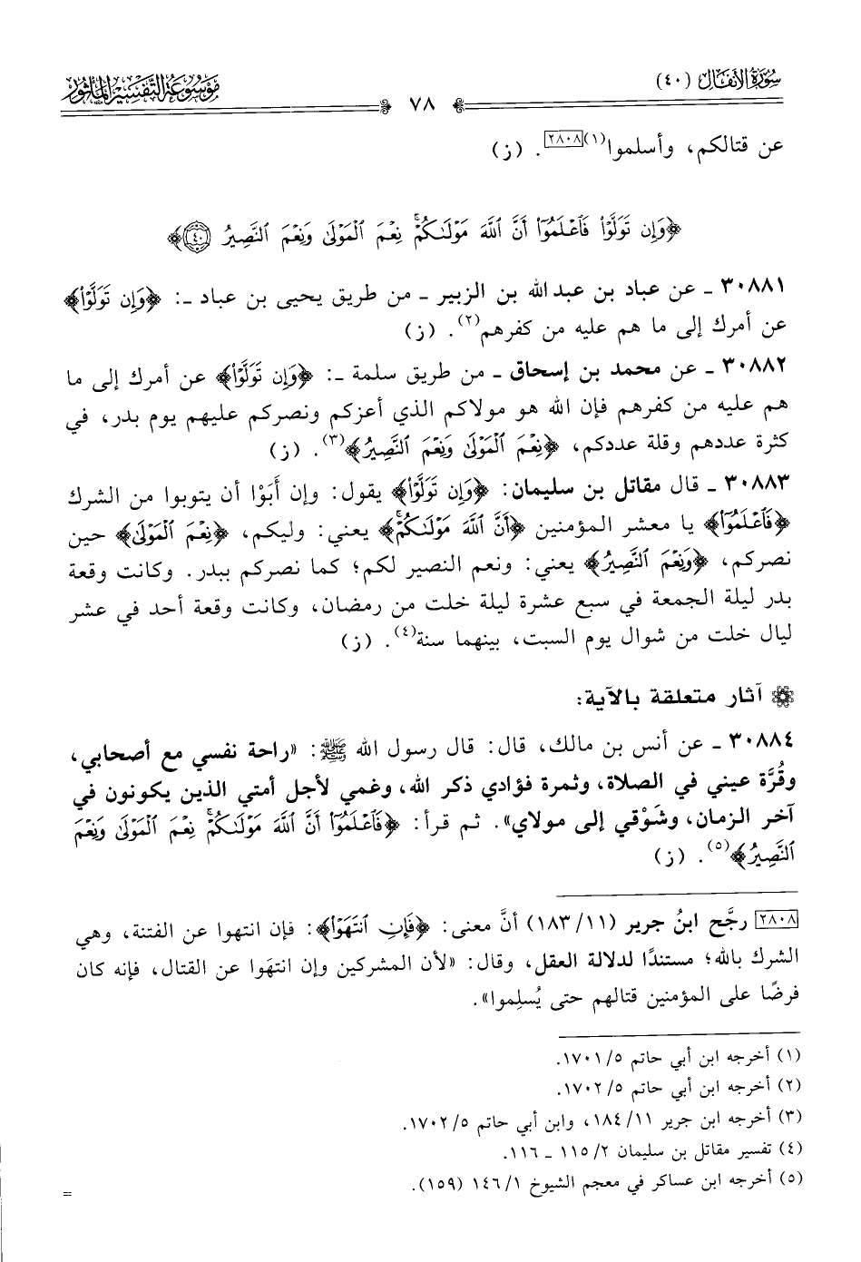 ٣٠٨٨٢ - عن محمد بن إسحاق -من طريق سلمة-: {وإن تولوا} عن أمرك إلى ما هم عليه من كفرهم فإن الله هو مولاكم الذي أعزكم ونصركم عليهم يوم بدر، في كثرة عددهم وقلة عددكم، {نعم المولى ونعم النصير} (¬٣). (ز)