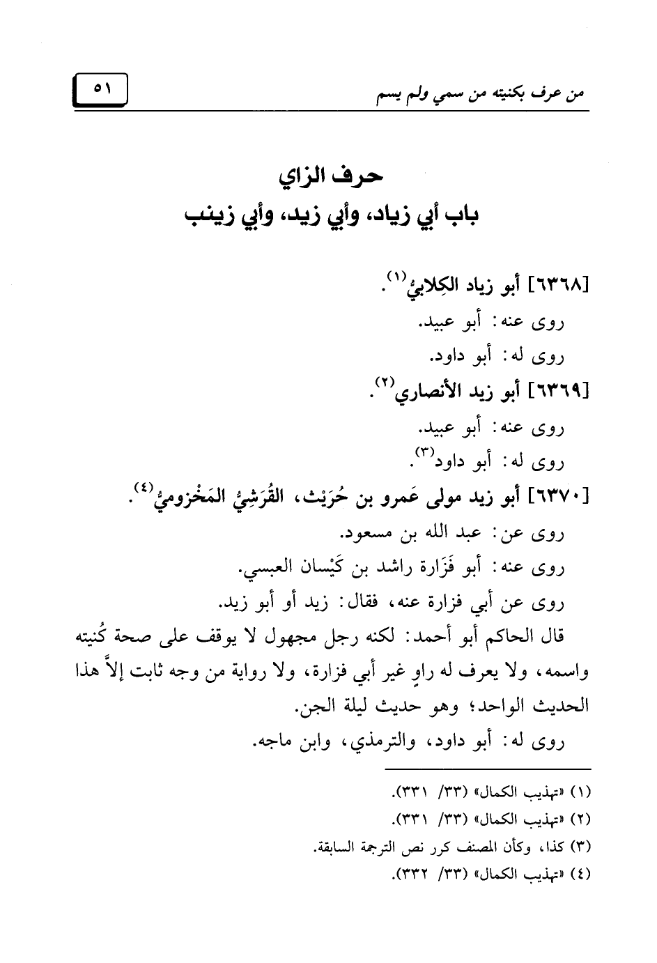 حرف الزاي باب أبي زياد، وأبي زيد، وأبي زينب