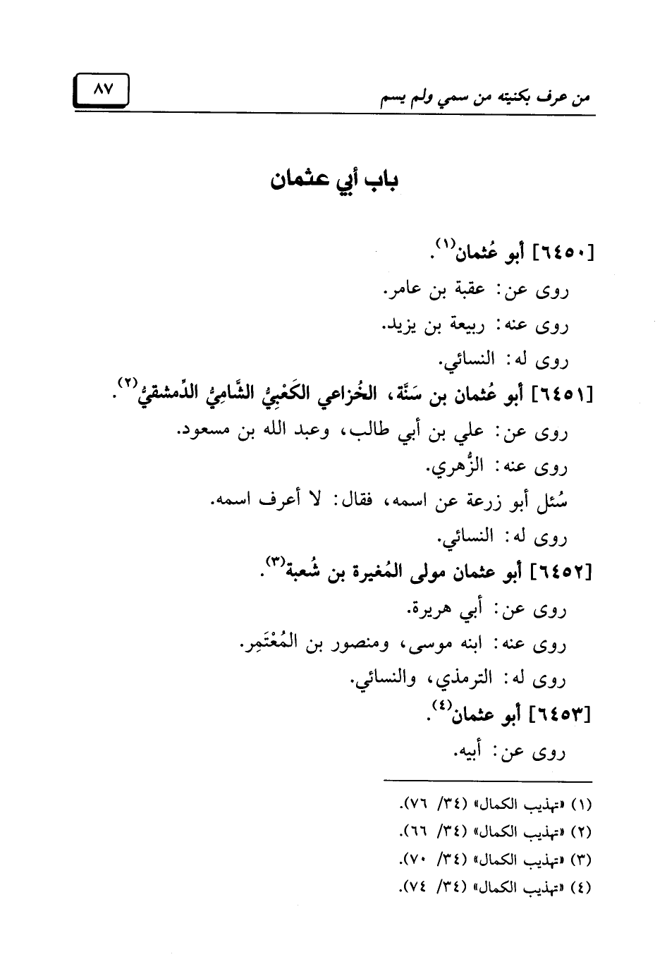 (¬٤) "تهذيب الكمال" (٣٤/ ٧٤).