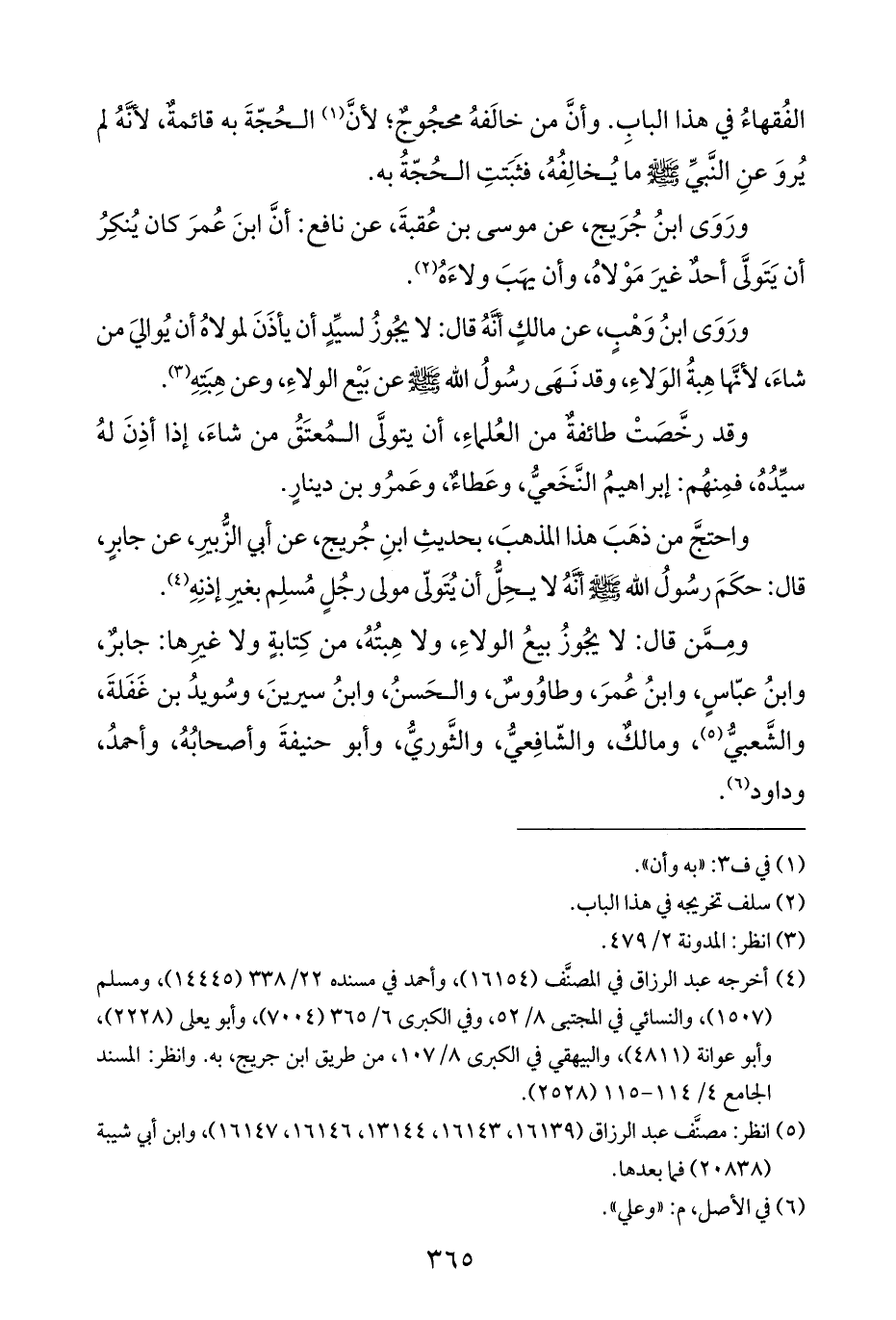 ورَوَى ابنُ جُرَيج، عن موسى بن عُقبةَ، عن نافع: أنَّ ابنَ عُمرَ كان يُنكِرُ أن يَتَولَّى أحدٌ غيرَ مَوْلاهُ، وأن يهَبَ ولاءَهُ (¬٢).