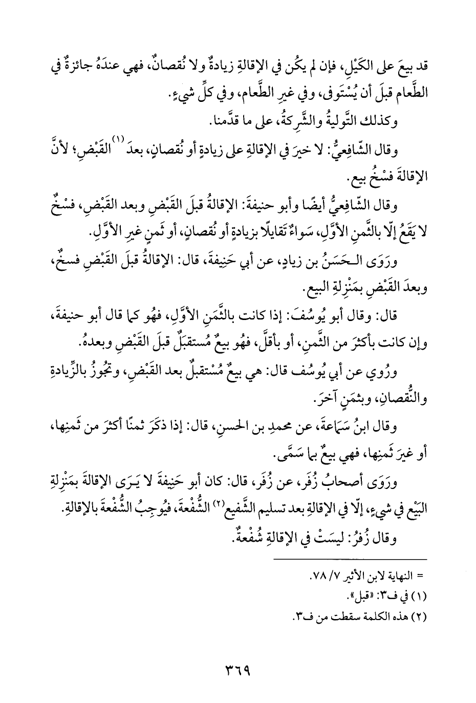 ورَوَى أصحابُ زُفَر، عن زُفَر، قال: كان أبو حَنِيفةَ لا يَرَى الإقالةَ بمَنْزِلةِ البَيعْ في شيءٍ، إلّا في الإقالةِ بعد تسليم الشَّفيع (¬٢) الشُّفْعةَ، فيُوجِبُ الشُّفْعةَ بالإقالةِ.