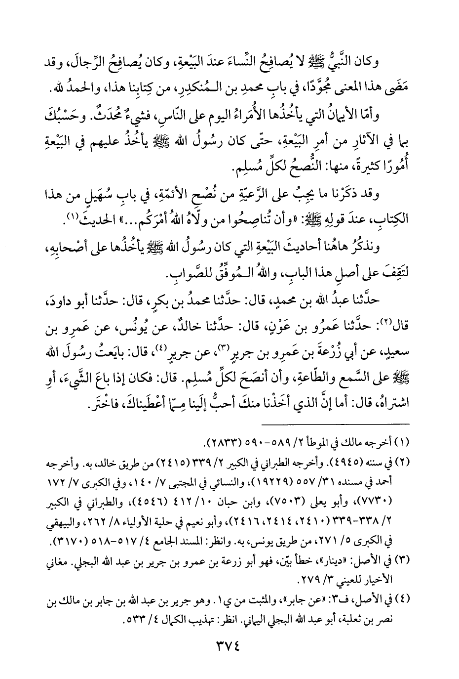 ونذكُرُ هاهُنا أحاديثَ البَيْعةِ التي كان رسُولُ اللَّه -صلى اللَّه عليه وسلم- يأخُذُها على أصْحابِهِ، لتَقِفَ على أصلِ هذا البابِ، واللَّهُ المُوفِّقُ للصَّوابِ.