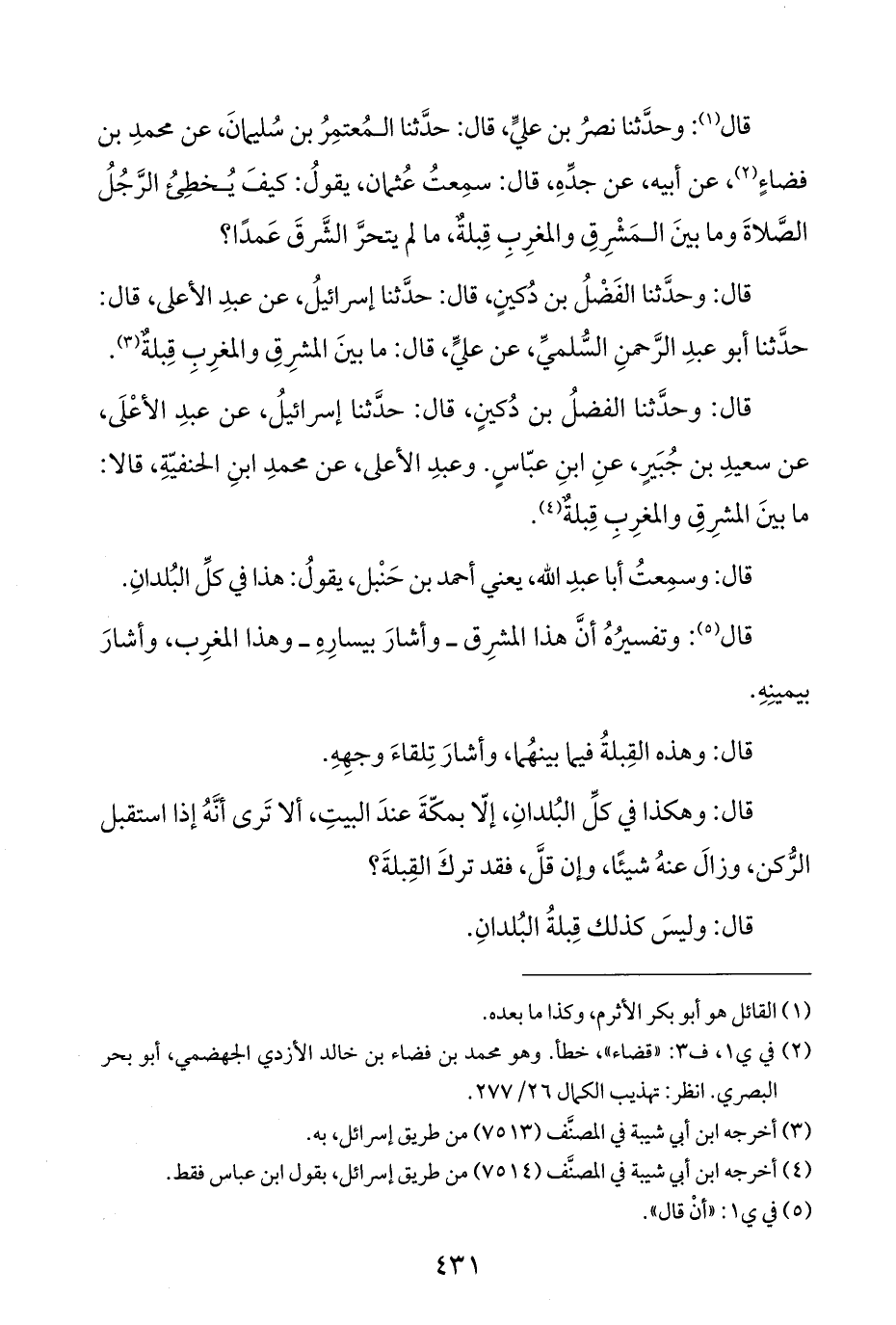 قال: وحدَّثنا الفَضْلُ بن دُكينٍ، قال: حدَّثنا إسرائيلُ، عن عبدِ الأعلى، قال: حدَّثنا أبو عبدِ الرَّحمنِ السُّلميِّ، عن عليٍّ، قال: ما بينَ المشرِقِ والمغرِبِ قِبلةٌ (¬٣).