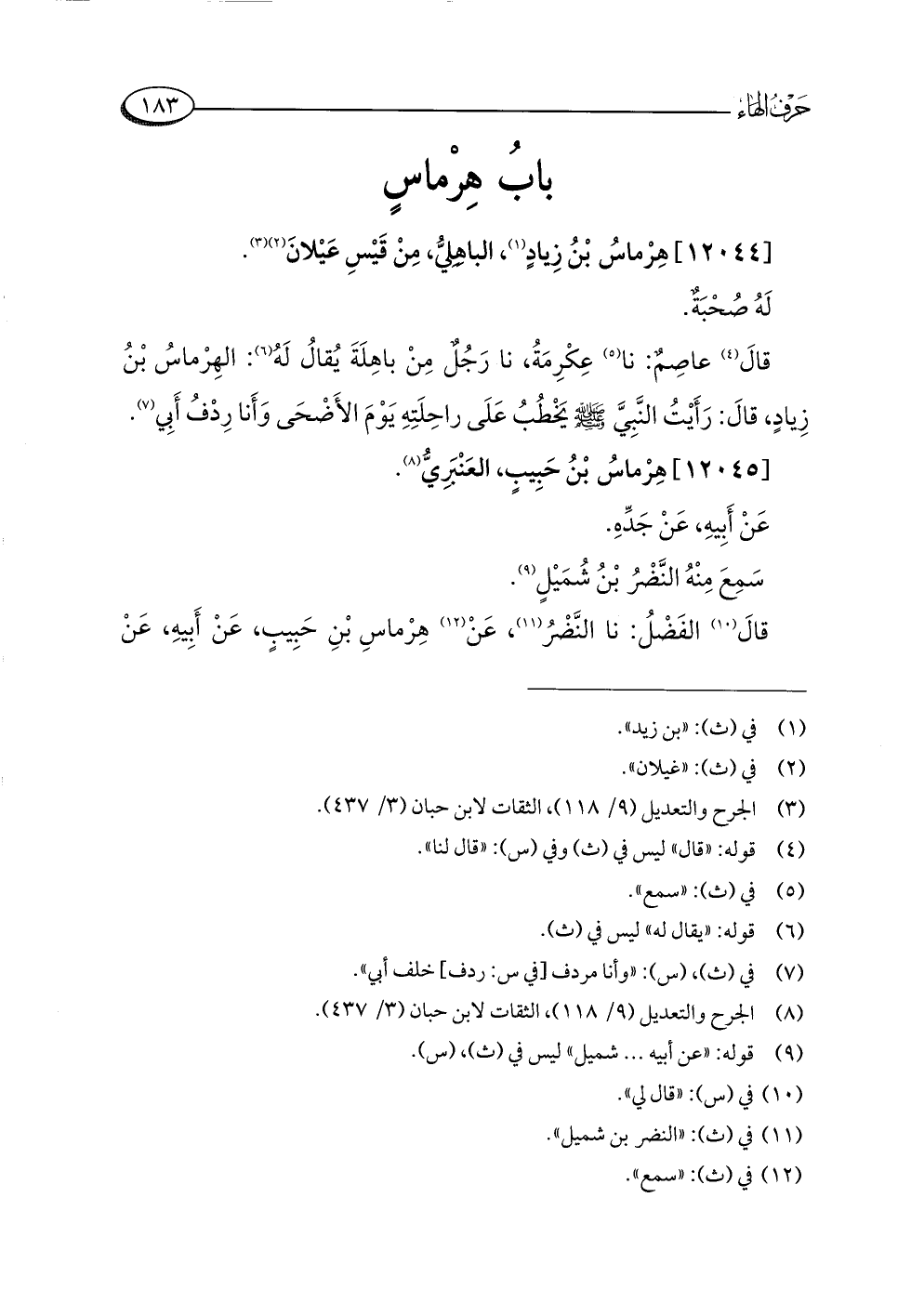 [١٢٠٤٥] هِرْماسُ بْنُ حَبِيبٍ، العَنْبَرِيُّ (¬٨).