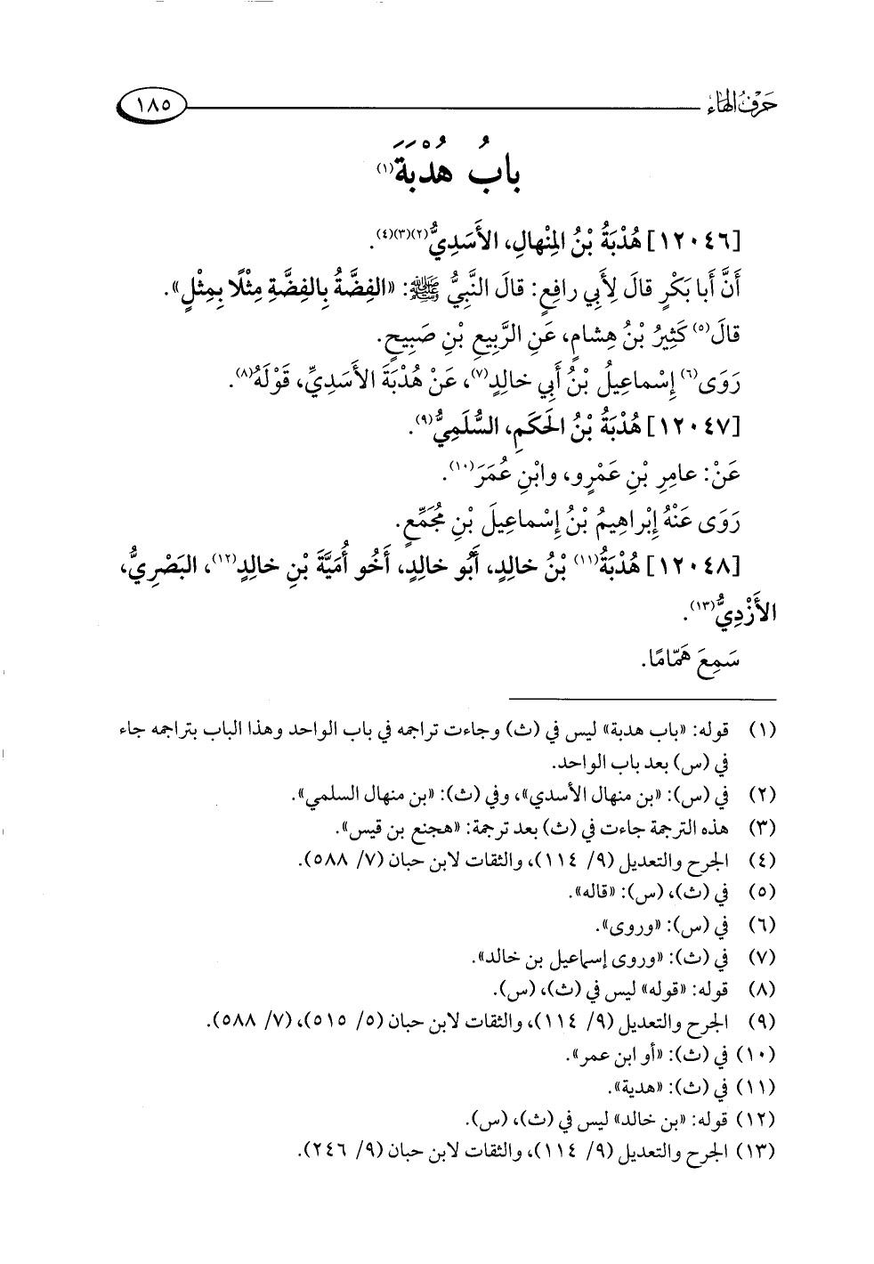 (¬١) قوله: "باب هدبة" ليس في (ث) وجاءت تراجمه في باب الواحد وهذا الباب بتراجمه جاء في (س) بعد باب الواحد.
