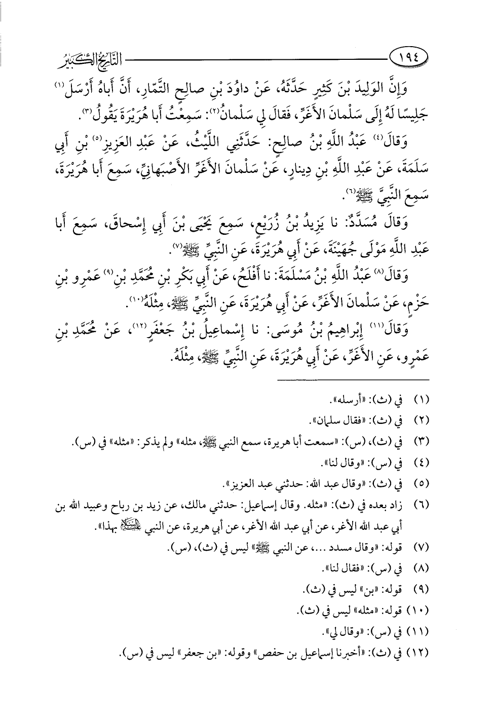 (¬٦) زاد بعده في (ث): "مثله. وقال إسماعيل: حدثني مالك، عن زيد بن رباح وعبيد اللَّه بن أبي عبد اللَّه الأغر، عن أبي عبد اللَّه الأغر، عن أبي هريرة، عن النبي -عليه السلام- بهذا".