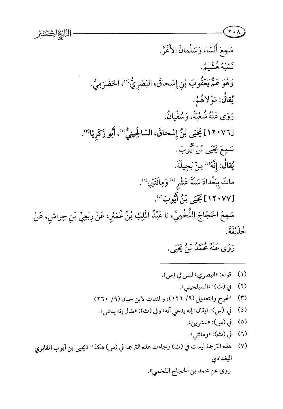 (¬٧) هذه الترجمة ليست في (ث) وجاءت هذه الترجمة في (س) هكذا: "يحيى بن أيوب المقابري البغدادي