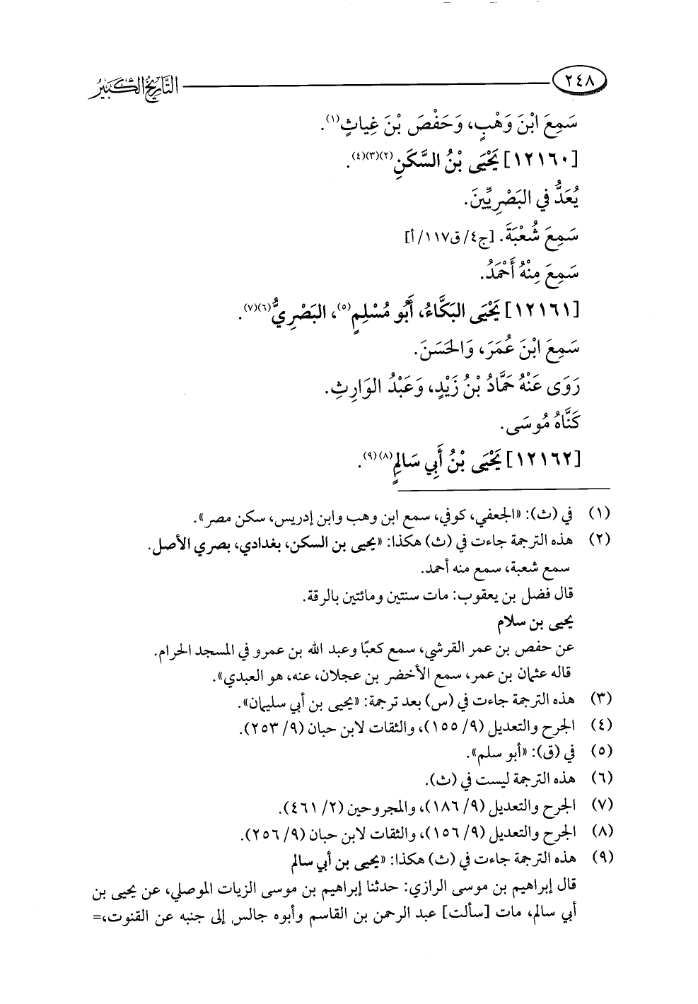 (¬٩) هذه الترجمة جاءت في (ث) هكذا: "يحيى بن أبي سالم