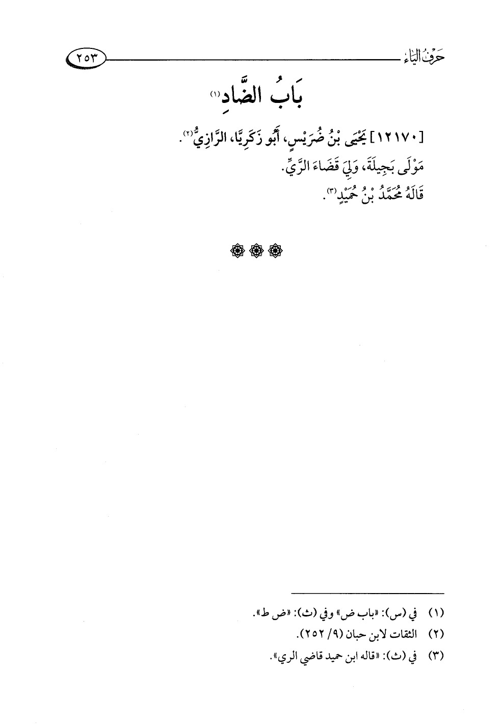 [١٢١٧٠] يَحْيَى بْنُ ضُرَيْسٍ، أَبُو زَكَرِيَّا، الرَّازِيُّ (¬٢).