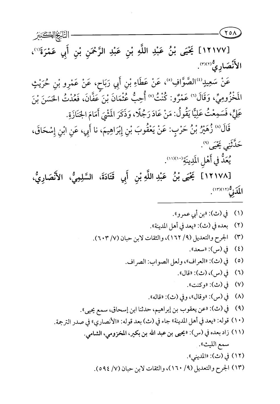 (¬٩) في (ث): "عن يعقوب بن إبراهيم، حدثنا ابن إسحاق، سمع يحيى".
