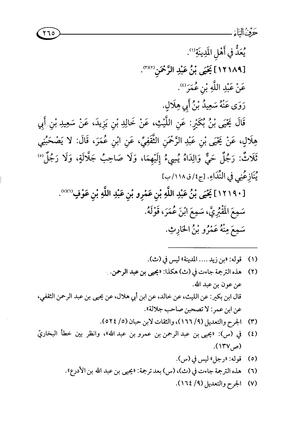 (¬٢) هذه الترجمة جاءت في (ث) هكذا: "يحيى بن عبد الرحمن.
