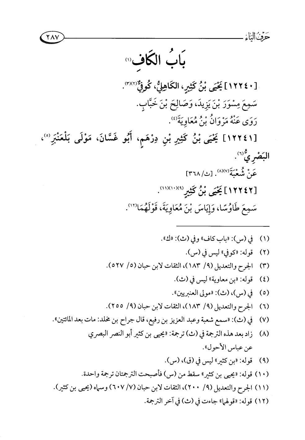 (¬١١) الجرح والتعديل (٩/ ٢٠٠)، الثقات لابن حبان (٧/ ٦٥٧) وسماه (يحيى بن كثير).