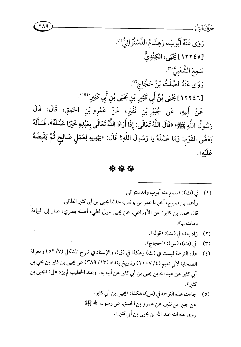 (¬٤) هذه الترجمة ليست في (ث) وهكذا في (ق)، والإسناد في شرح المشكل (٧/ ٥٢) ومعرفة الصحابة لأبي نعيم (٤/ ٢٠٠٧) وتاريخ بغداد (١٣/ ٣٨٩) عن يحيى بن كثير بن يحيى بن أبي كثير عن عبد اللَّه بن يحيى بن أبي كثير عن أبيه به. وعند الخطيب لم يزد على: "يحيى بن كثير".