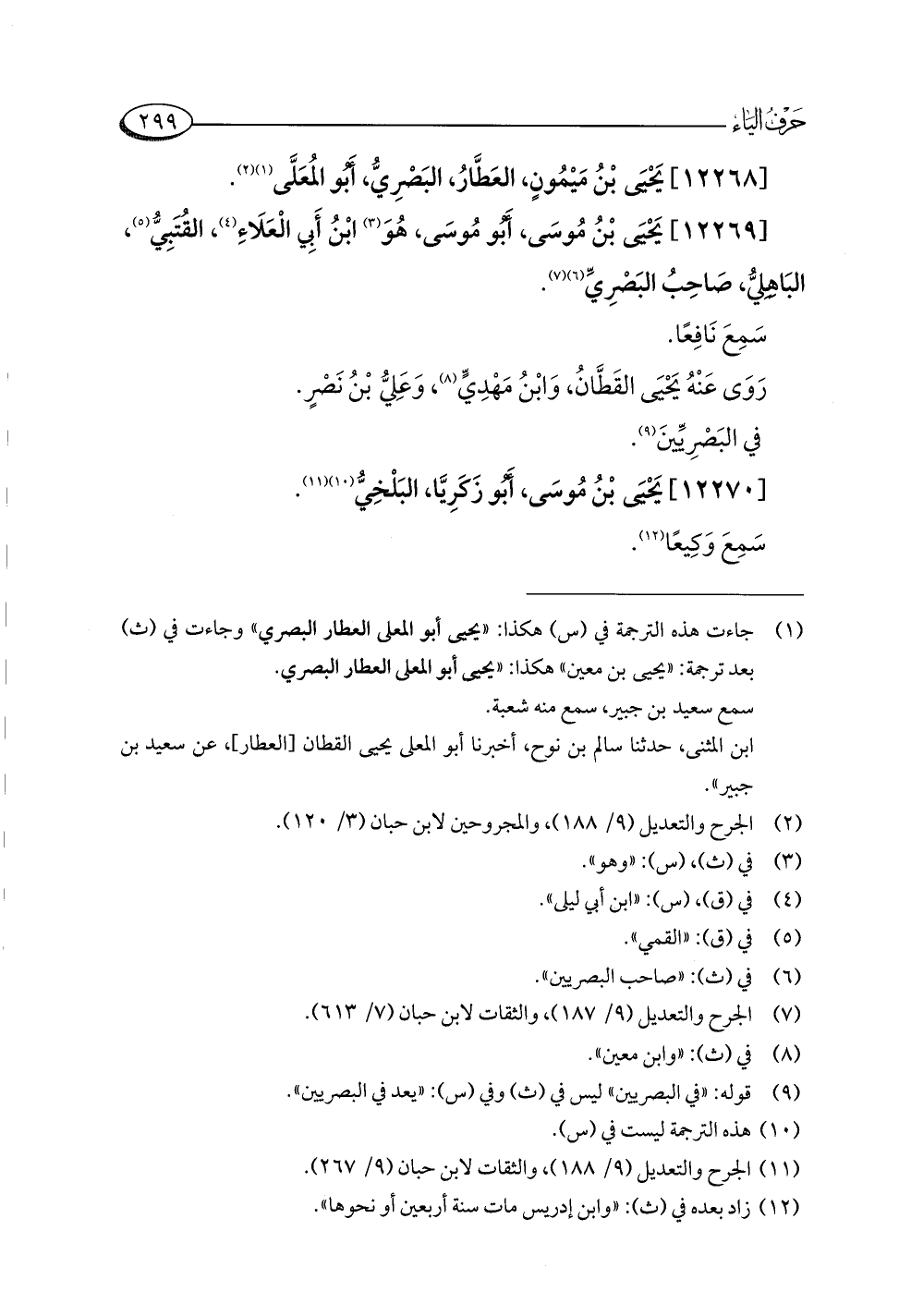(¬١) جاءت هذه الترجمة في (س) هكذا: "يحيى أبو المعلى العطار البصري" وجاءت في (ث) بعد ترجمة: "يحيى بن معين" هكذا: "يحيى أبو المعلى العطار البصري.