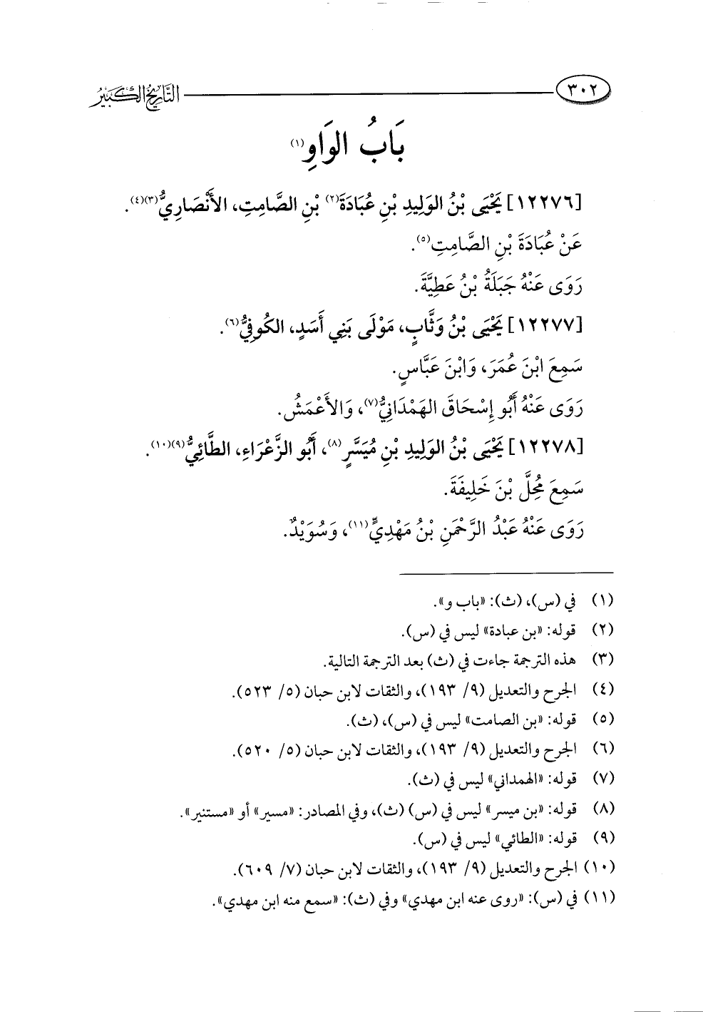[١٢٢٧٨] يَحْيَى بْنُ الوَلِيدِ بْنِ مُيَسَّرٍ (¬٨)، أَبُو الزَّعْرَاءِ، الطَّائِيُّ (¬٩) (¬١٠).